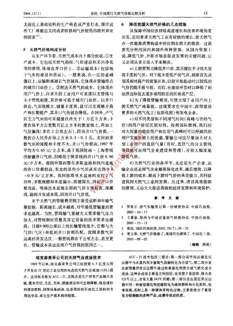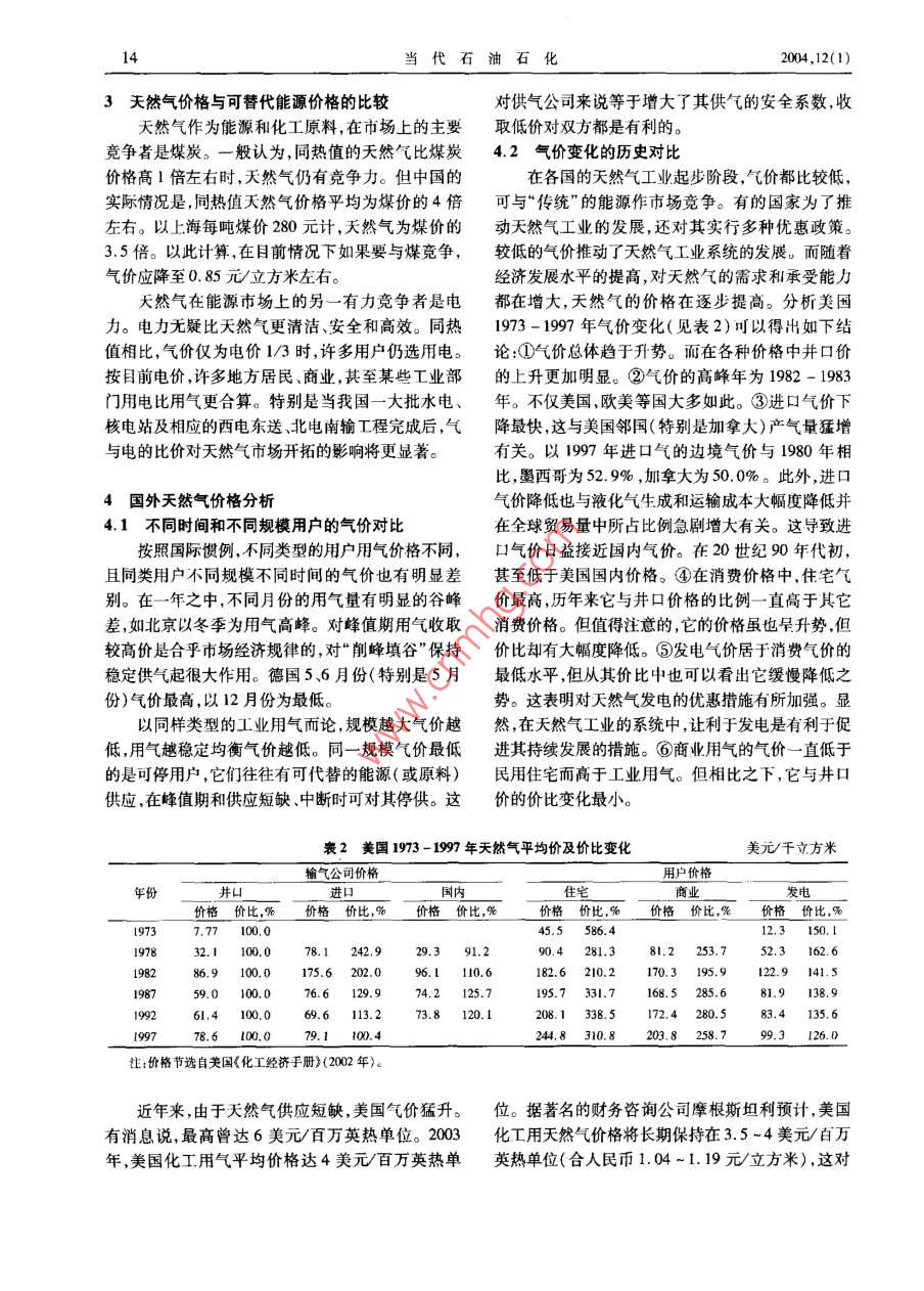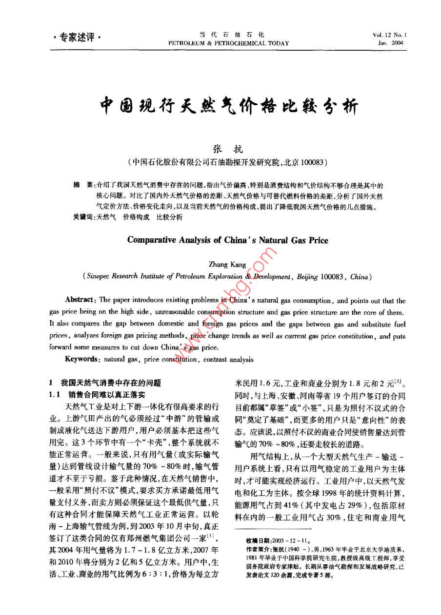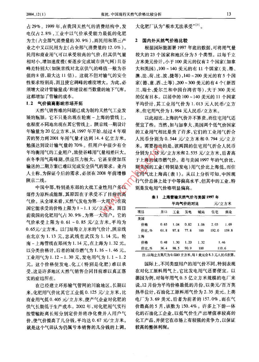 中国现行天然气价格比较分析