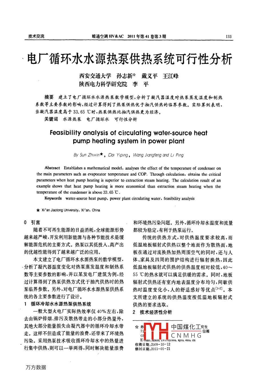 电厂循环水水源热泵供热系统可行性分析