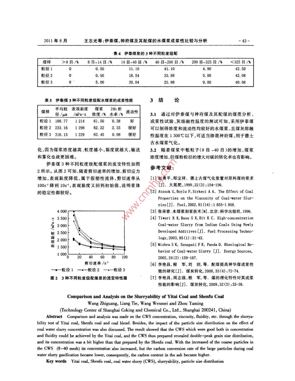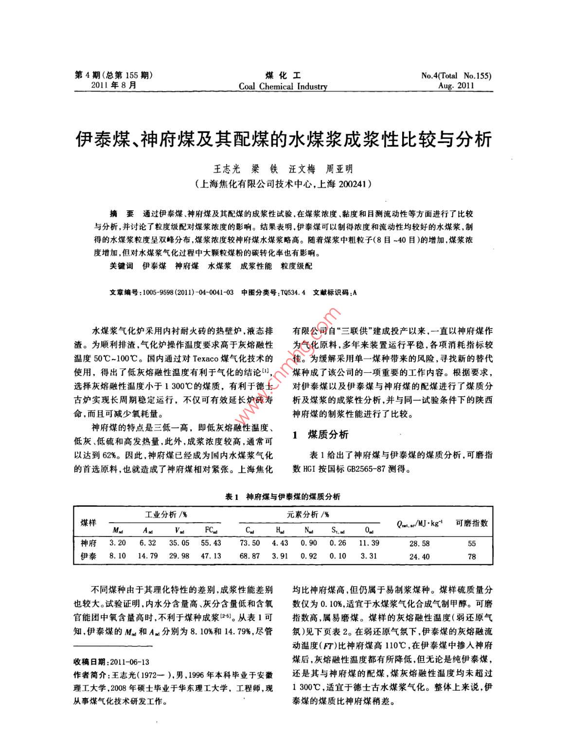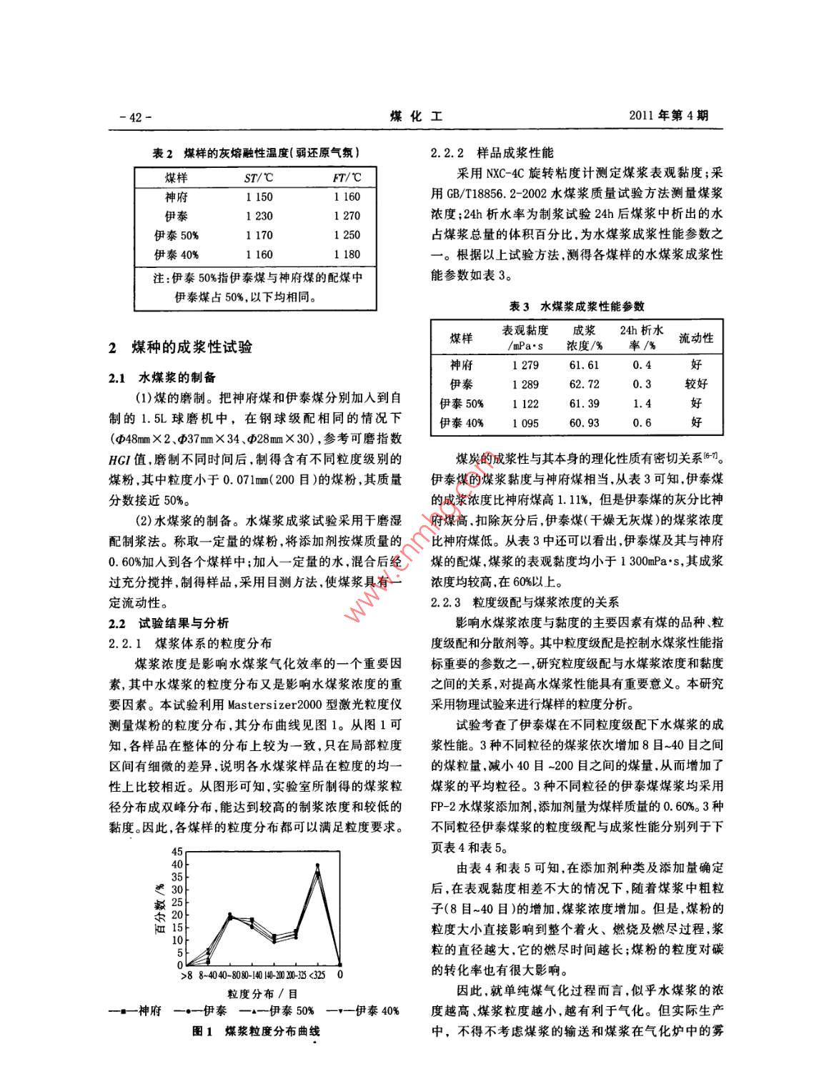 伊泰煤、神府煤及其配煤的水煤浆成浆性比较与分析