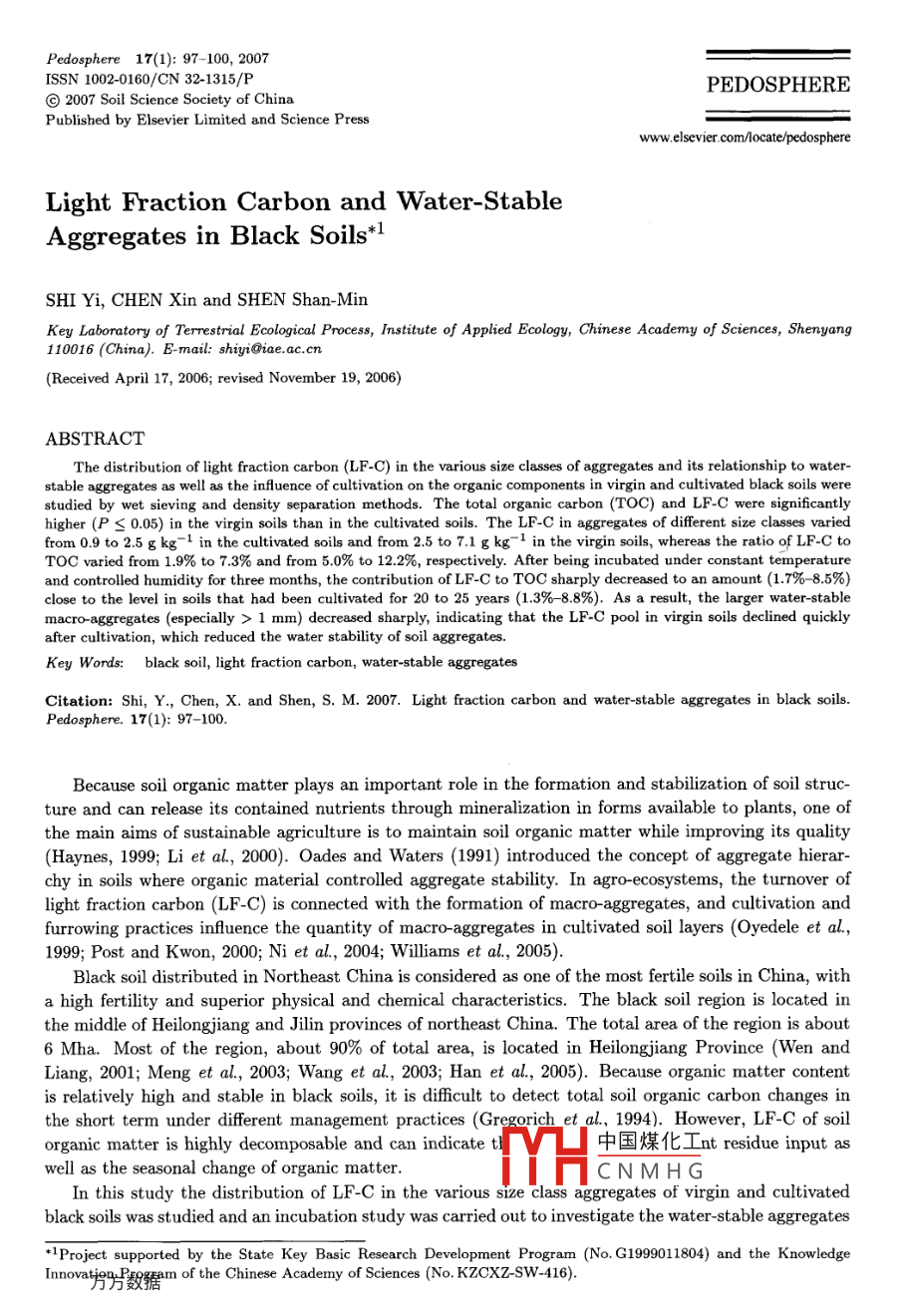 Light Fraction Carbon and Water-Stable Aggregates in Black Soils