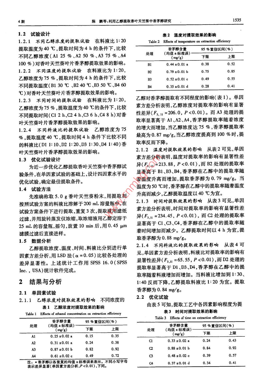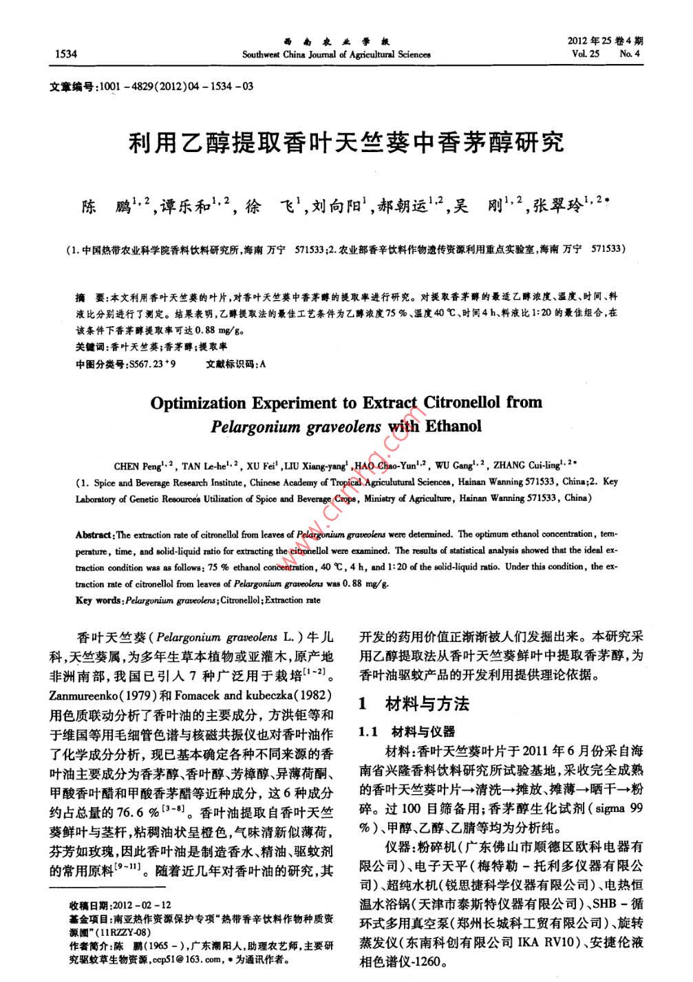 利用乙醇提取香叶天竺葵中香茅醇研究