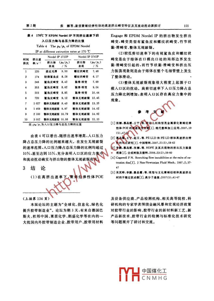 新型聚烯烃弹性体的高速挤出畸变特征及其流动扰动源探讨