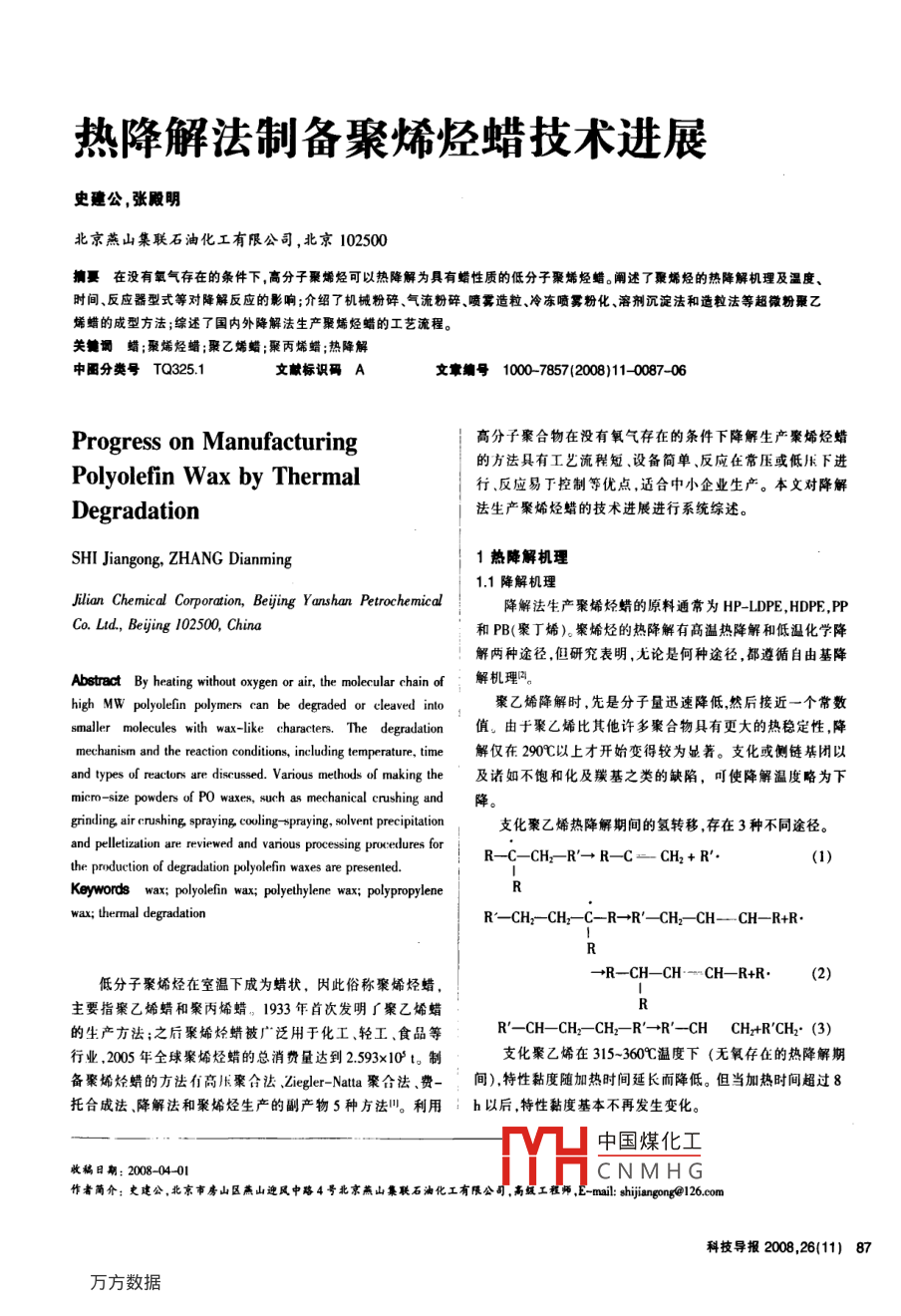 - 作者单位:北京燕山集联雷竞技世界杯手机登录 化工有限公司