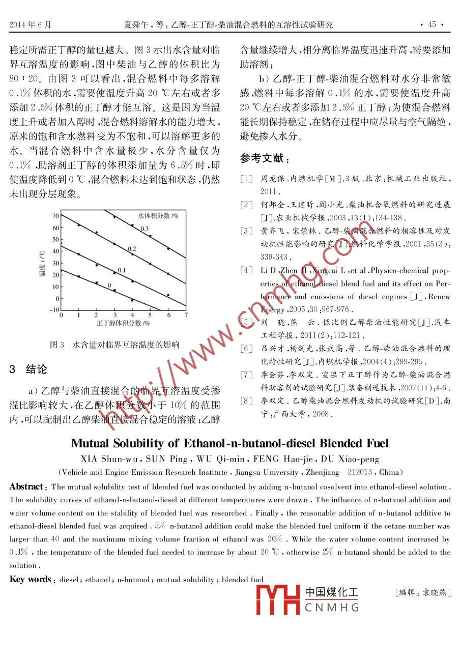 乙醇-正丁醇-柴油混合燃料的互溶性试验研究
