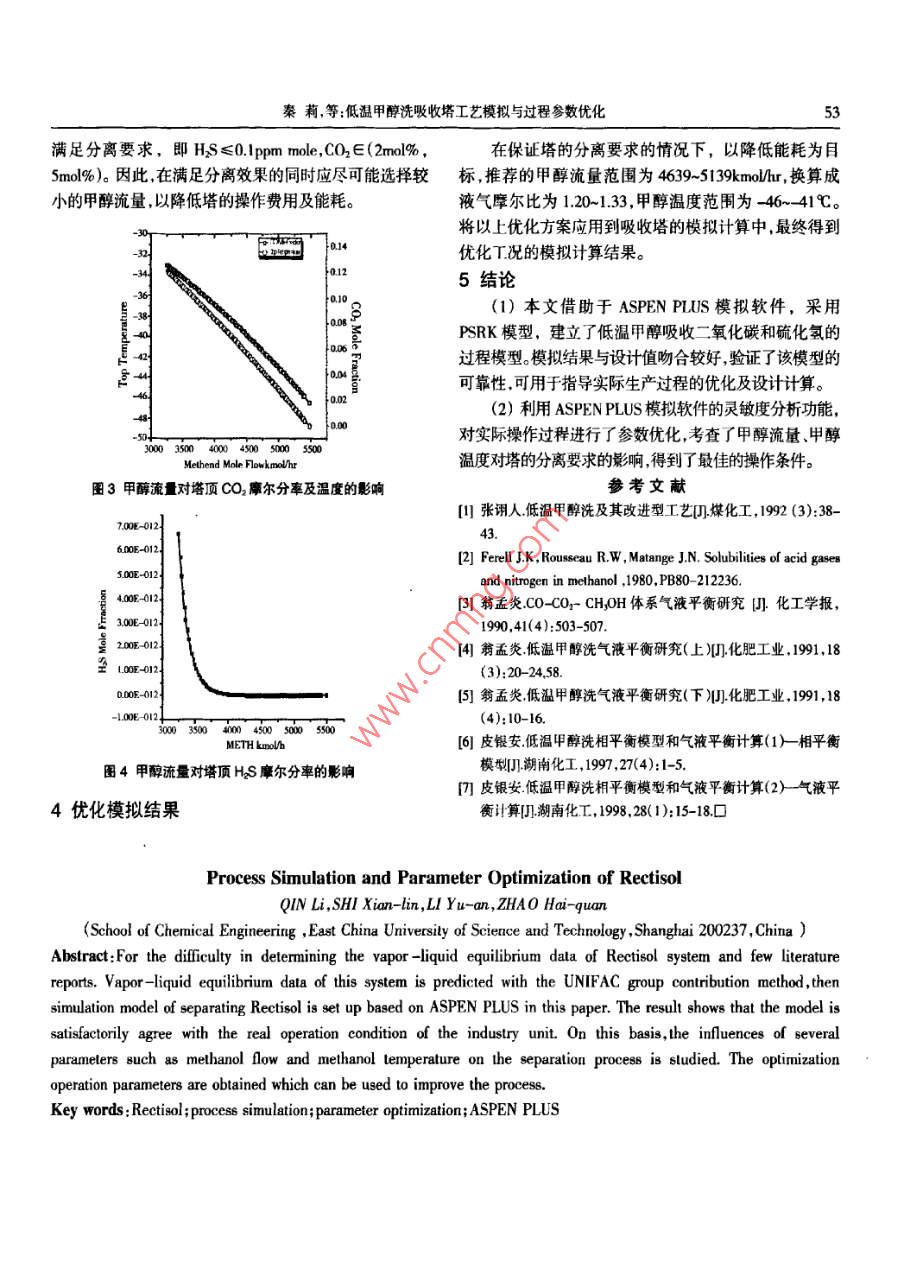 低温甲醇洗吸收塔工艺模拟与过程参数优化