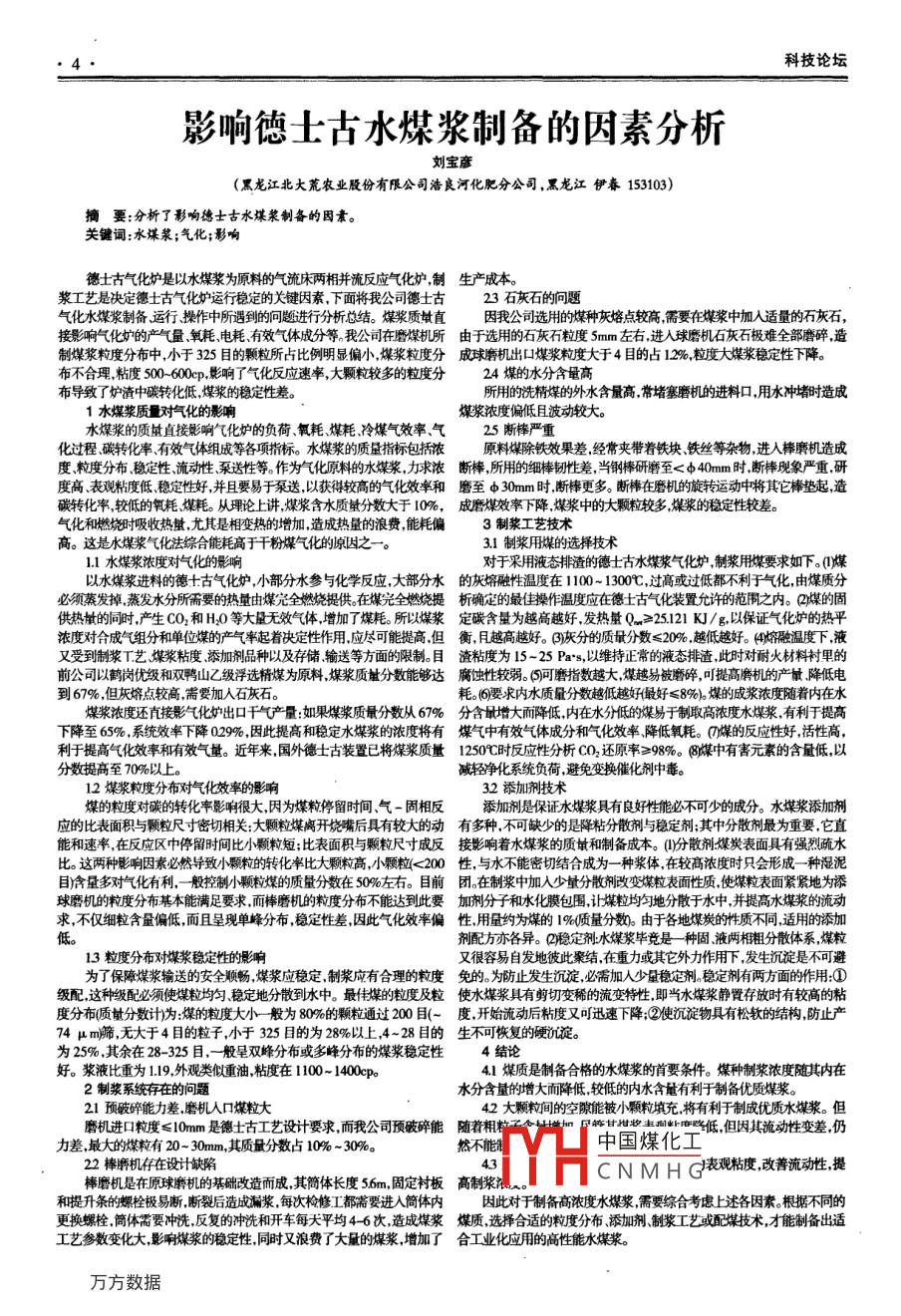 四喷嘴水煤浆气化炉工业应用情况简介 2020-06-12