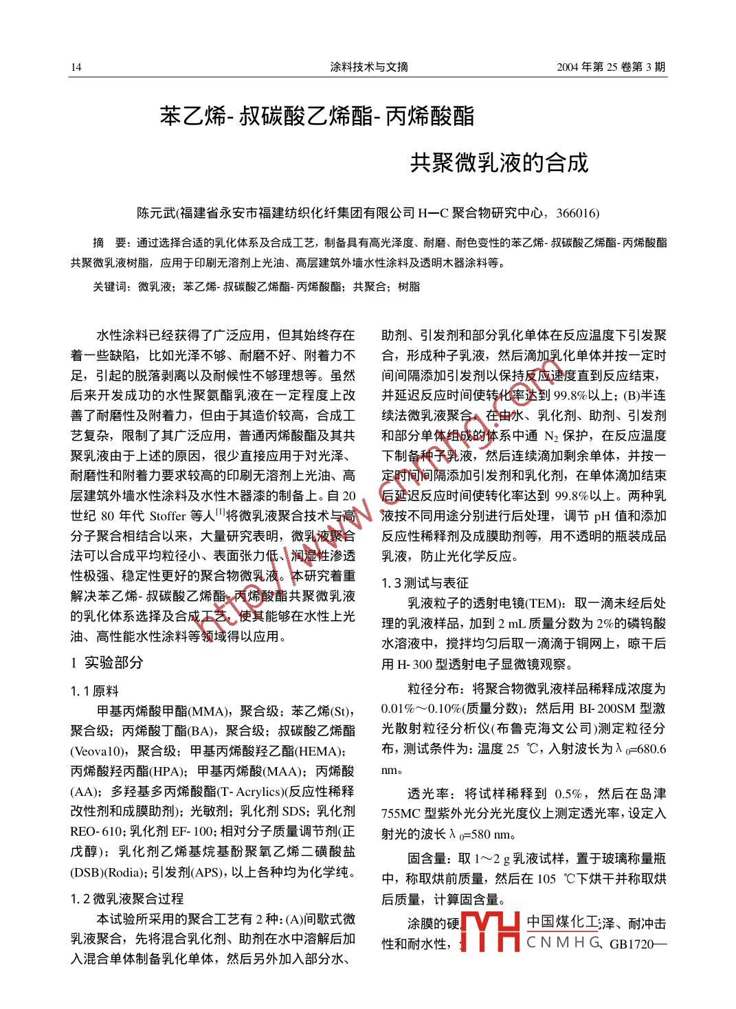 - 期刊名字:涂料技术与文摘