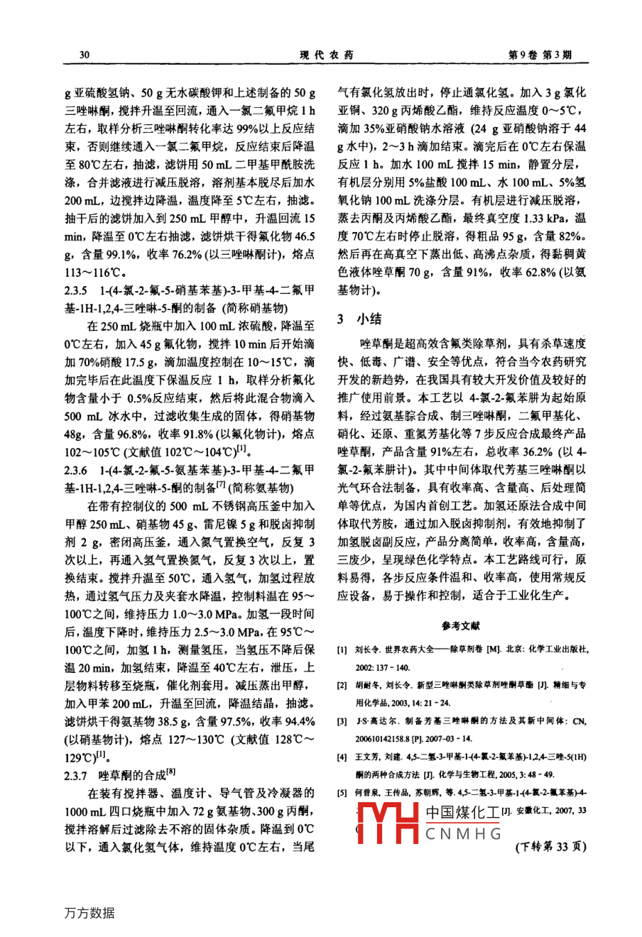 唑草酮的合成