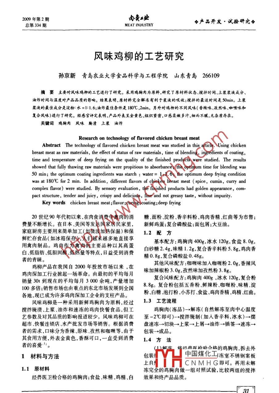风味鸡柳的工艺研究