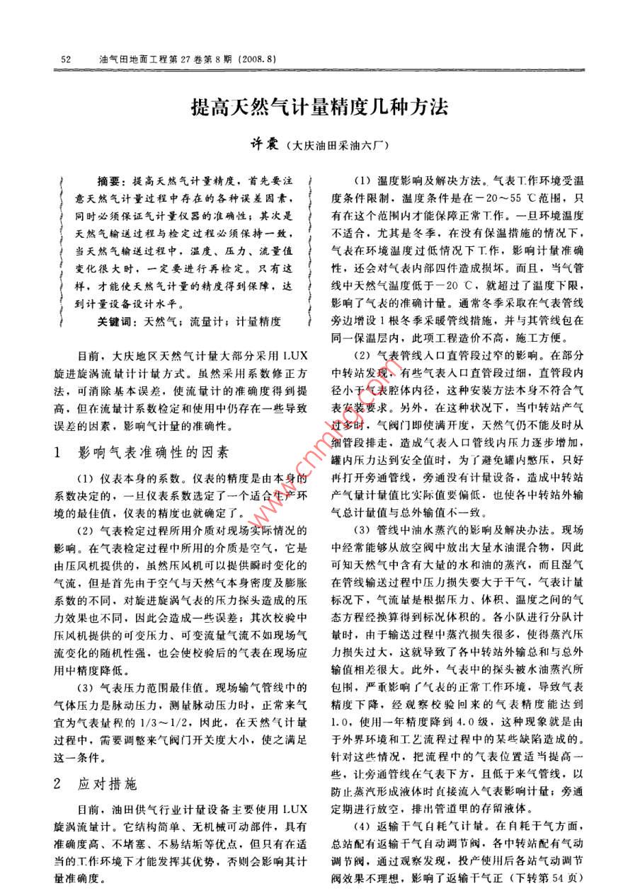 提高天然气计量精度几种方法