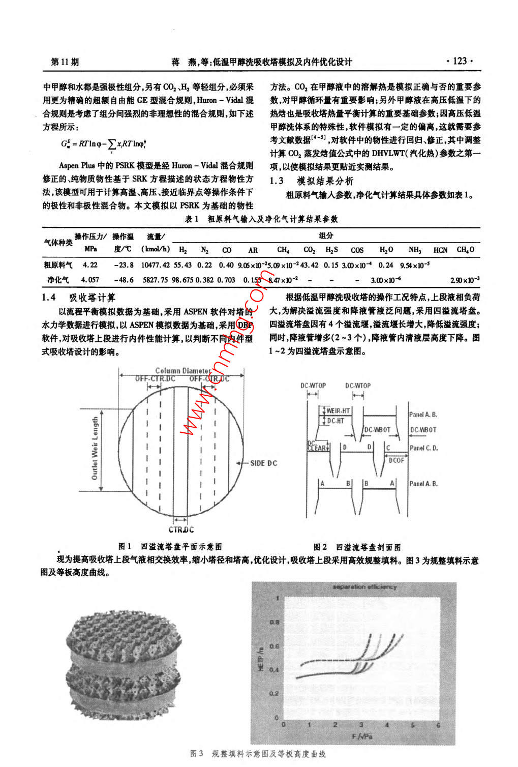 低温甲醇洗吸收塔模拟及内件优化设计