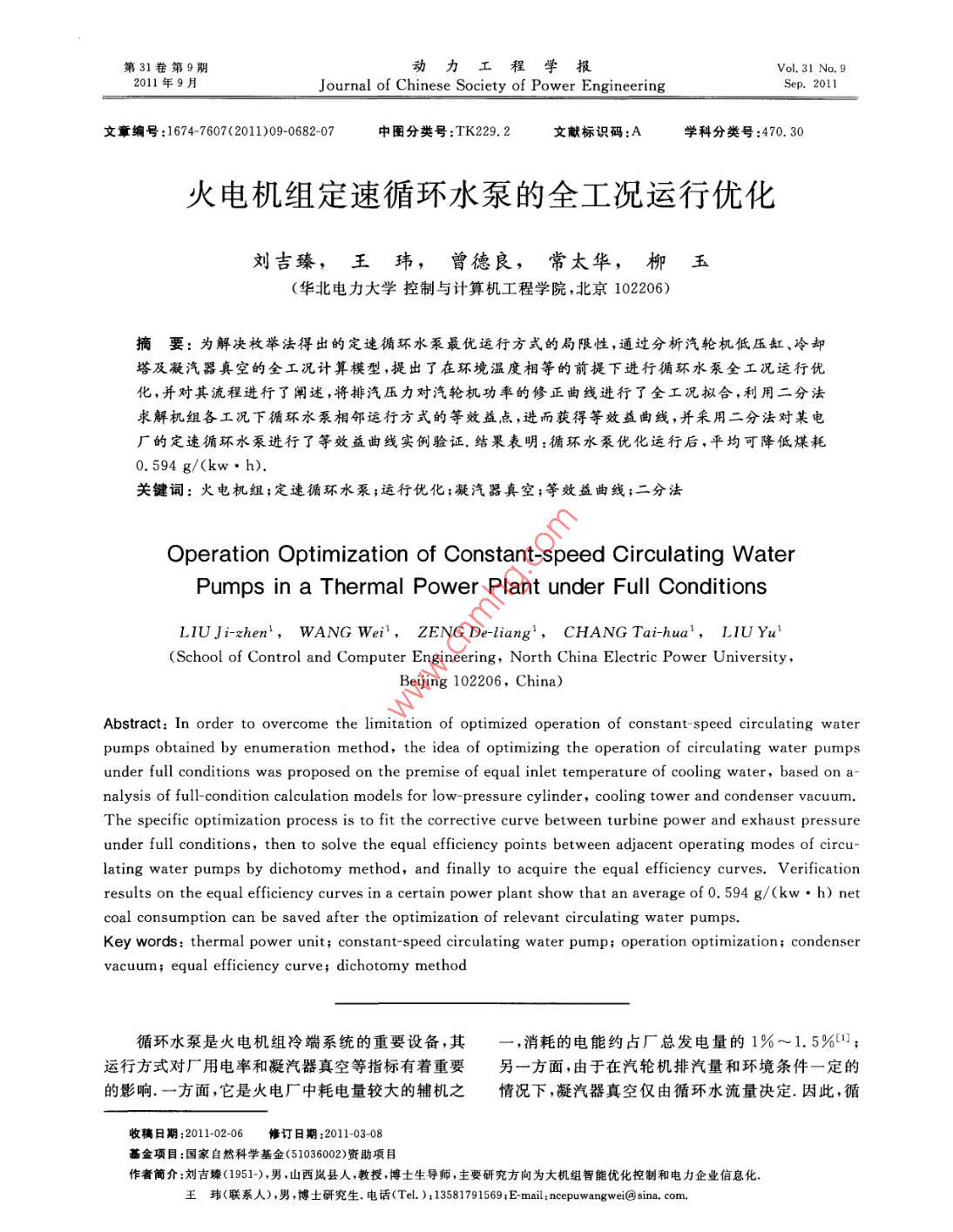 - 论文作者:刘吉臻,王玮,曾德良,常太华,柳玉