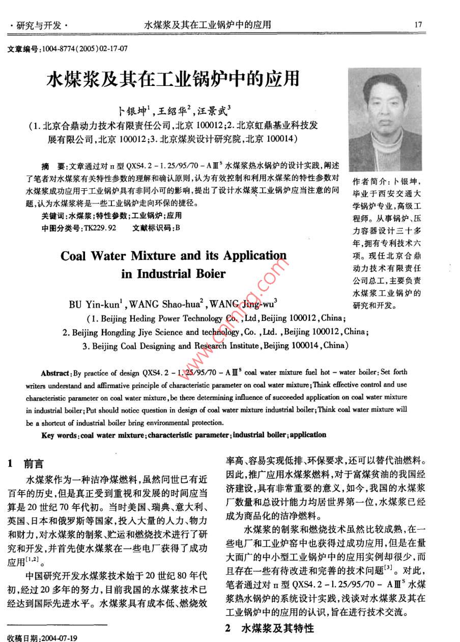 水煤浆及其在工业锅炉中的应用