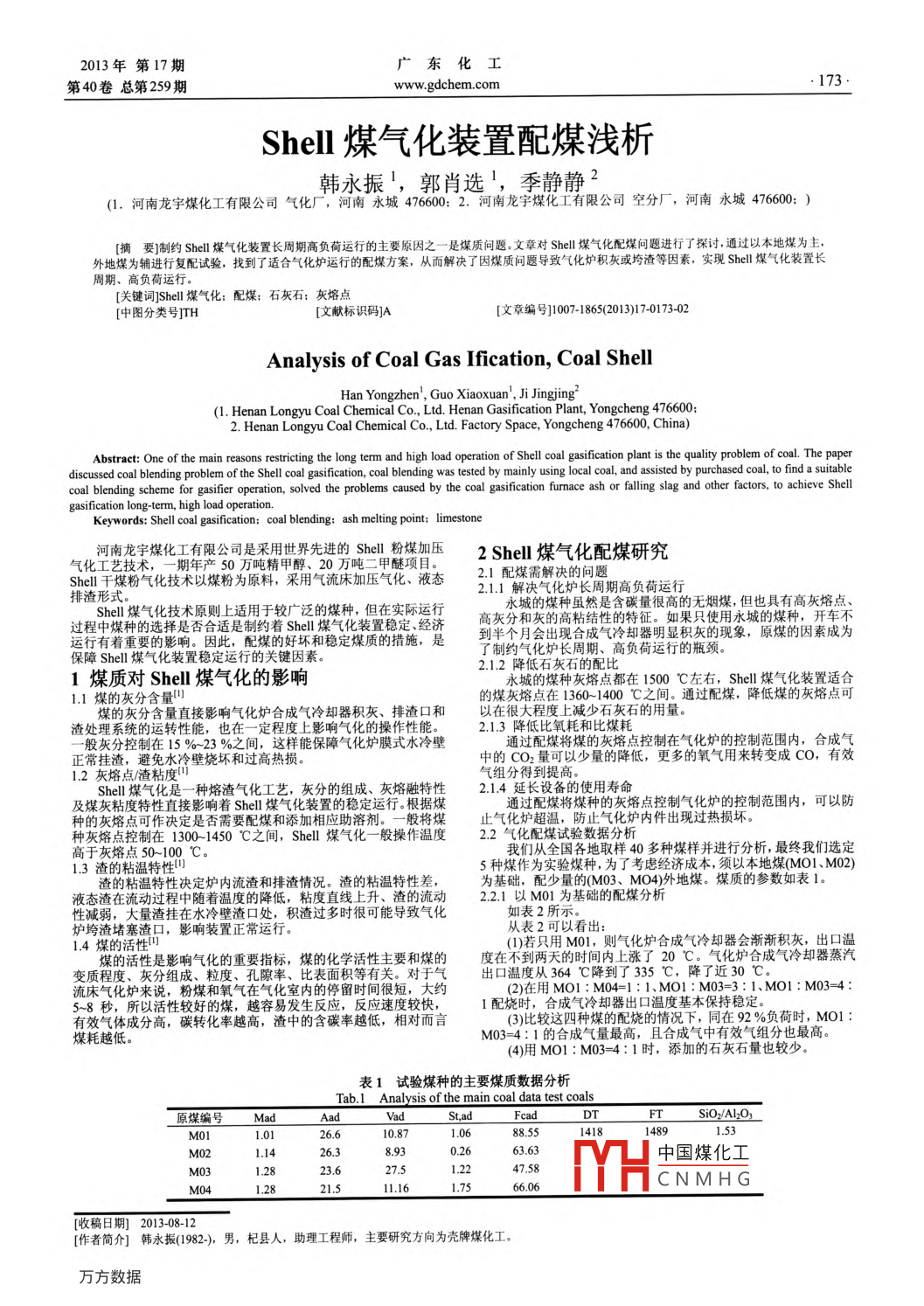 Shell煤气化装置配煤浅析