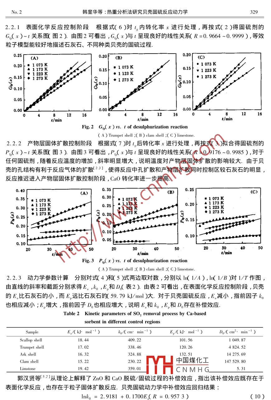 热重分析法研究贝壳固硫反应动力学