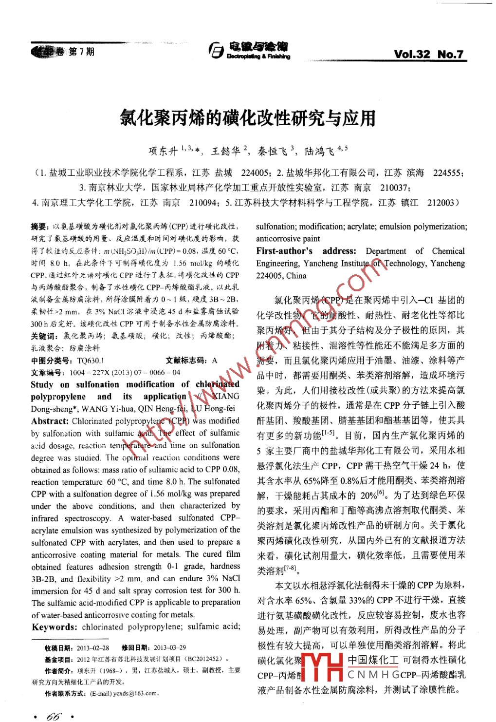 - 作者单位:盐城工业职业技术学院化学工程系,南京林业大学,盐城华邦化工有限公司,南京理工大学化工学院,江苏科技大学材料科学与工程学院