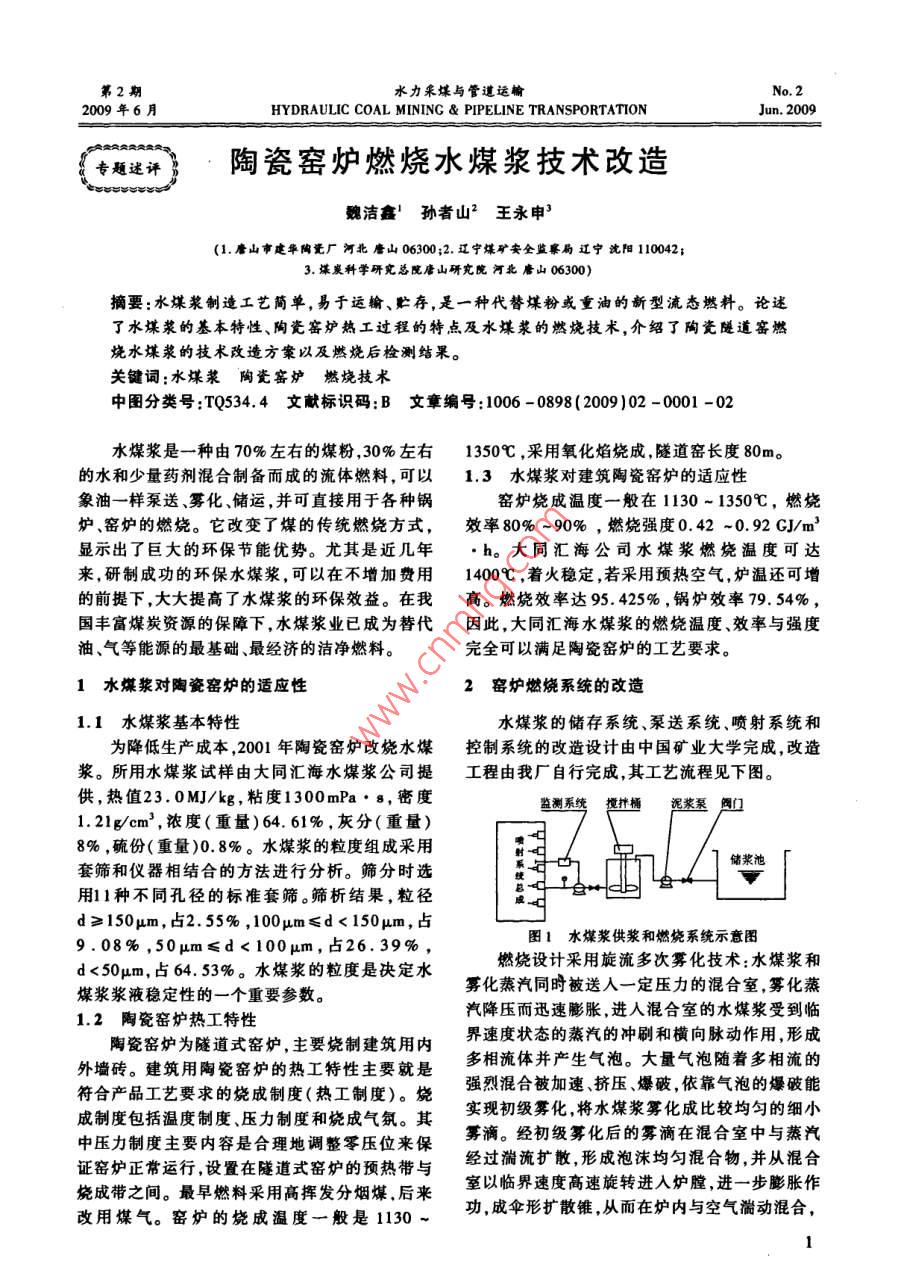 陶瓷窑炉燃烧水煤浆技术改造