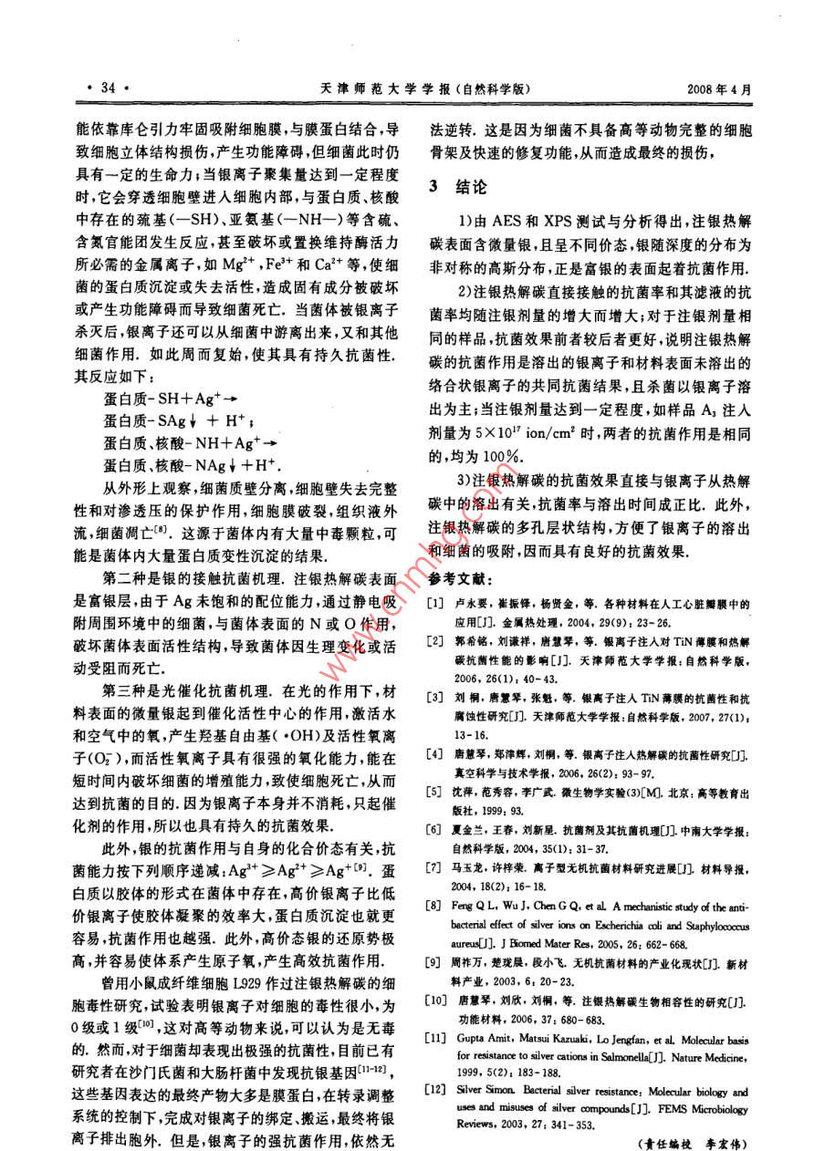 注银热解碳的抗菌机理研究