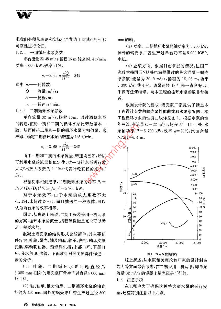 某核电站循环水泵的选择及配置