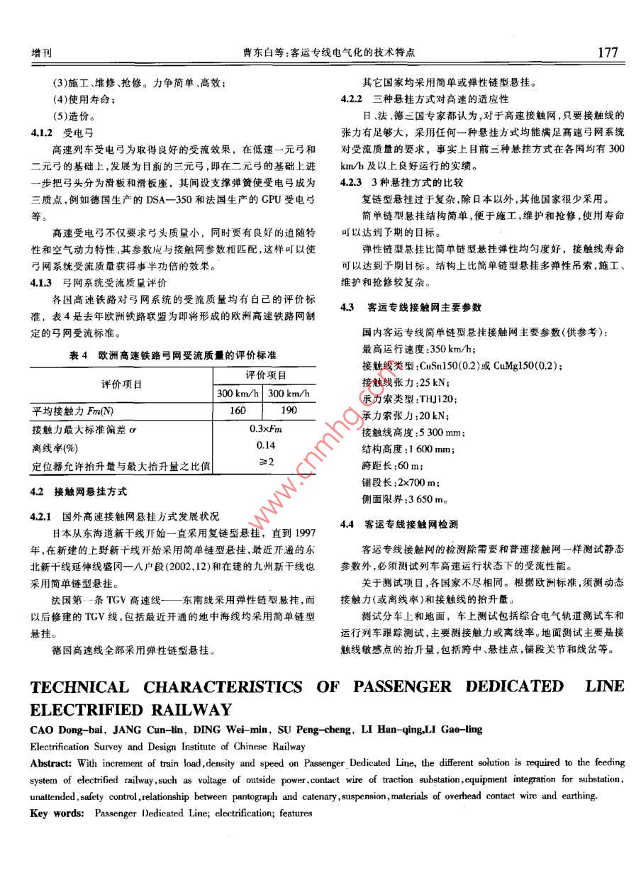 客运专线电气化的技术特点