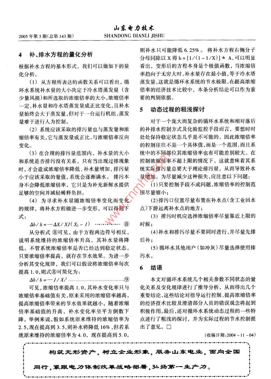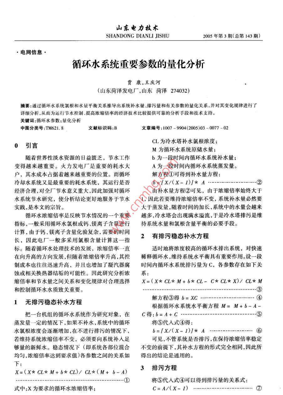 循环水系统重要参数的量化分析