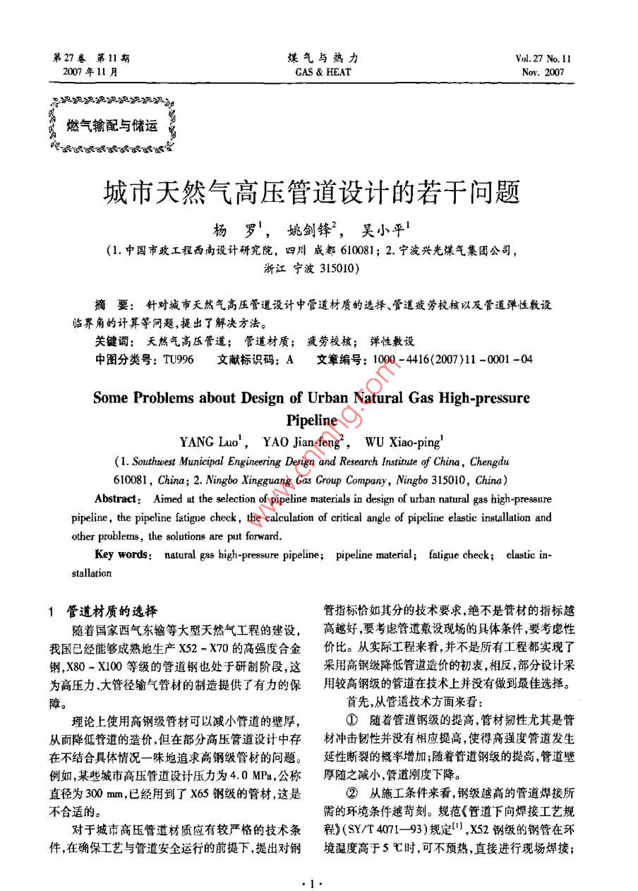 城市天然气高压管道设计的若干问题