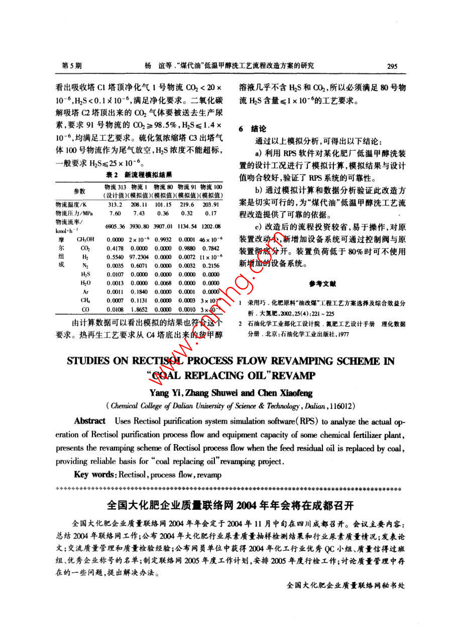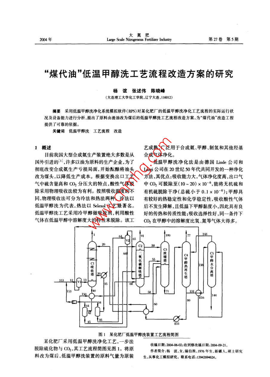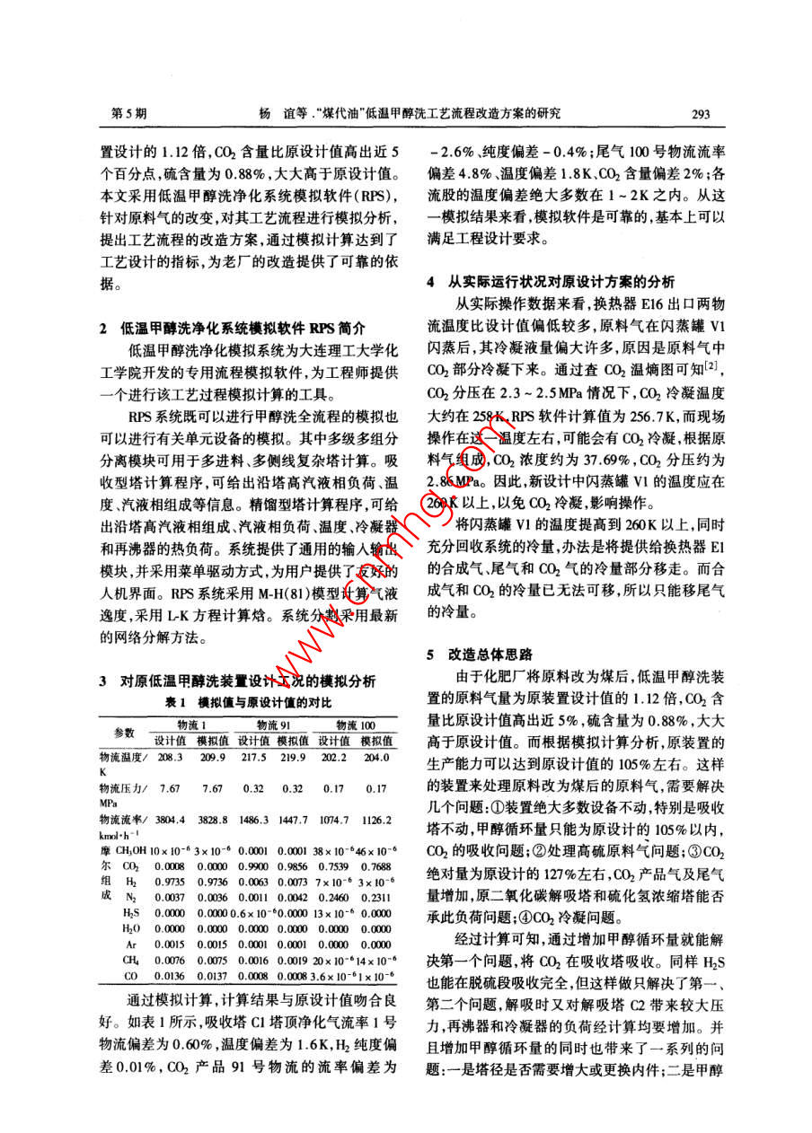 "煤代油"低温甲醇洗工艺流程改造方案的研究