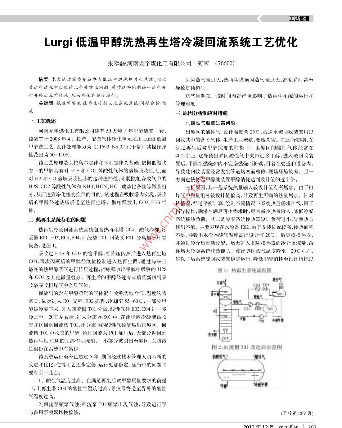 Lurgi低温甲醇洗热再生塔冷凝回流系统工艺优化