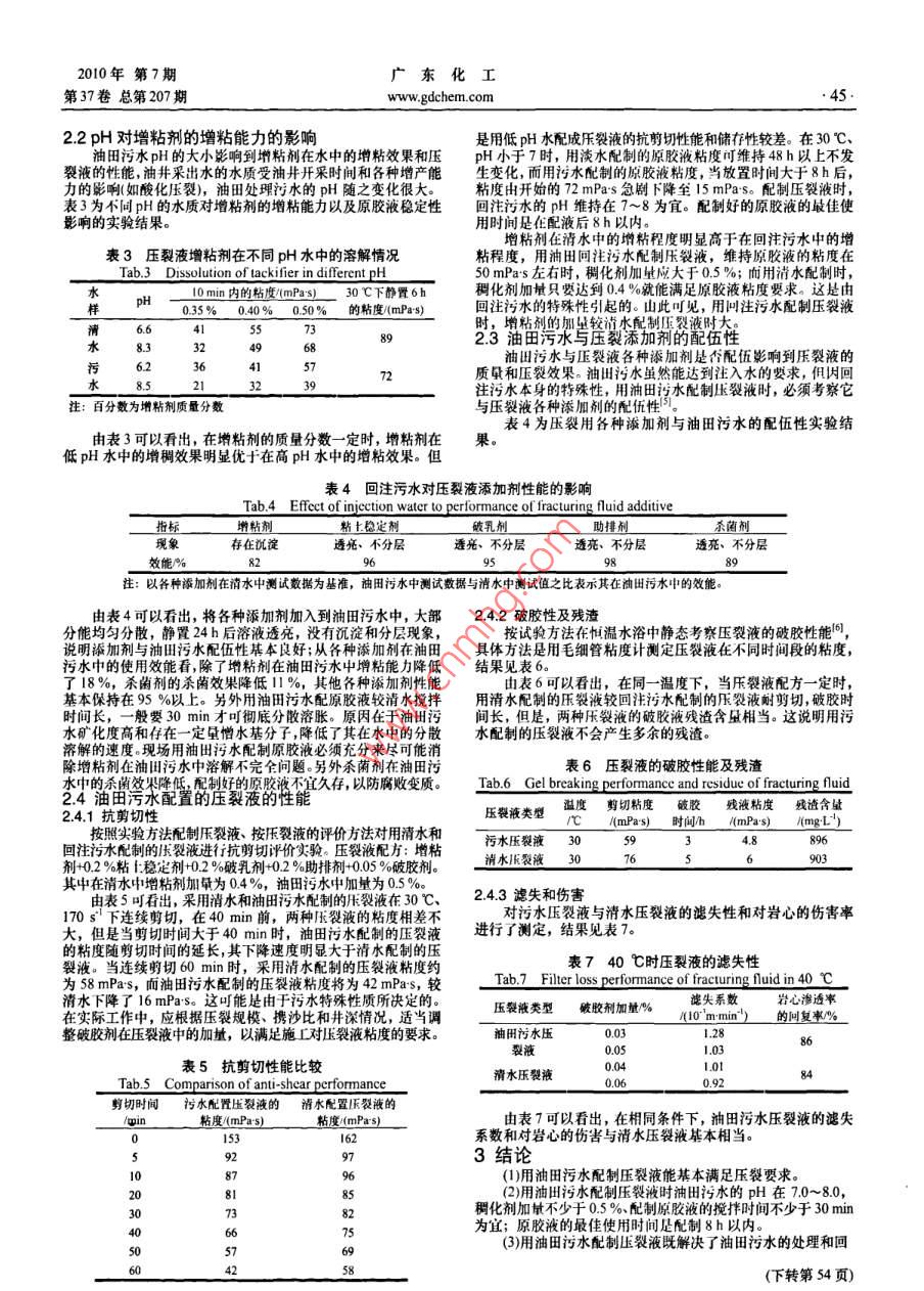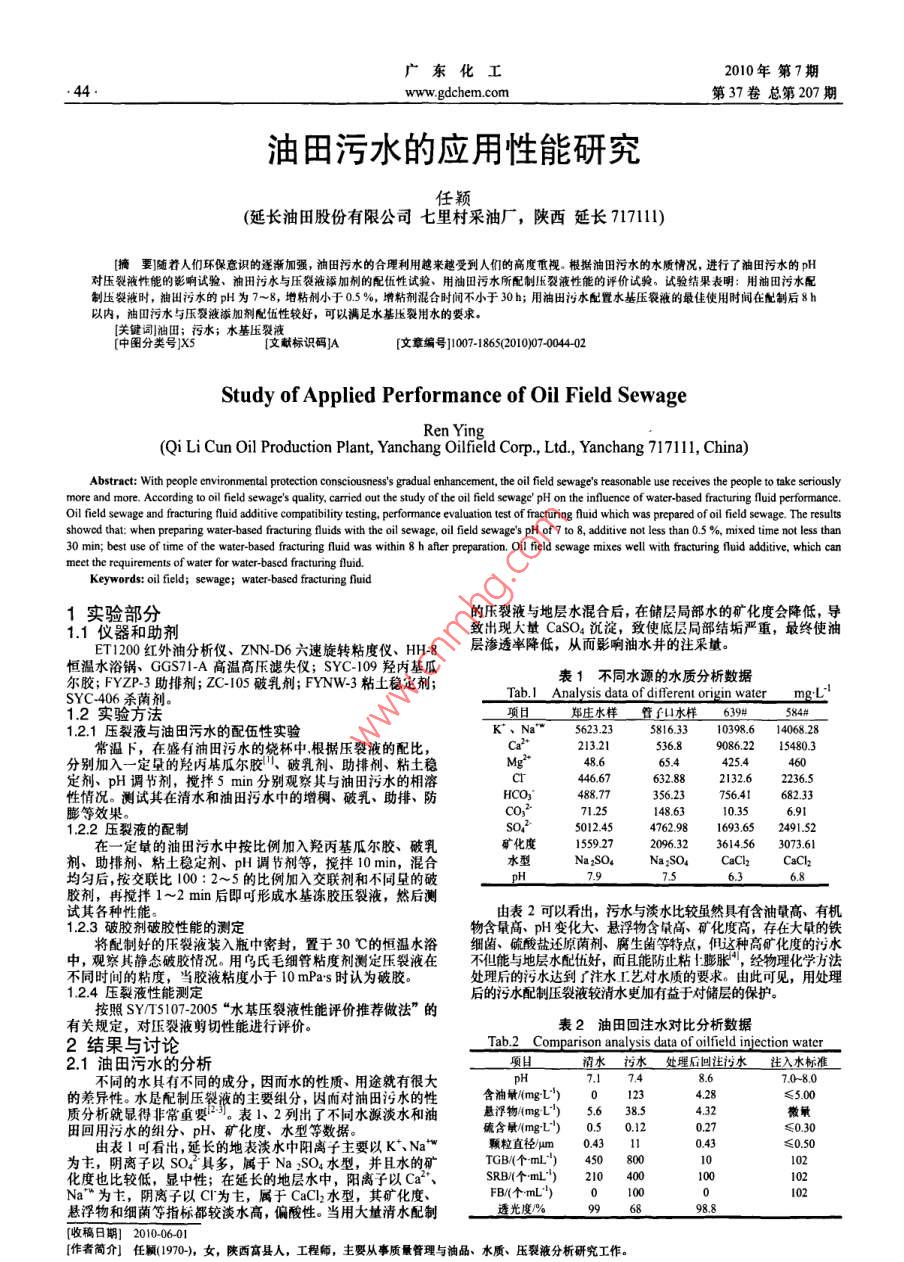 油田污水的应用性能研究
