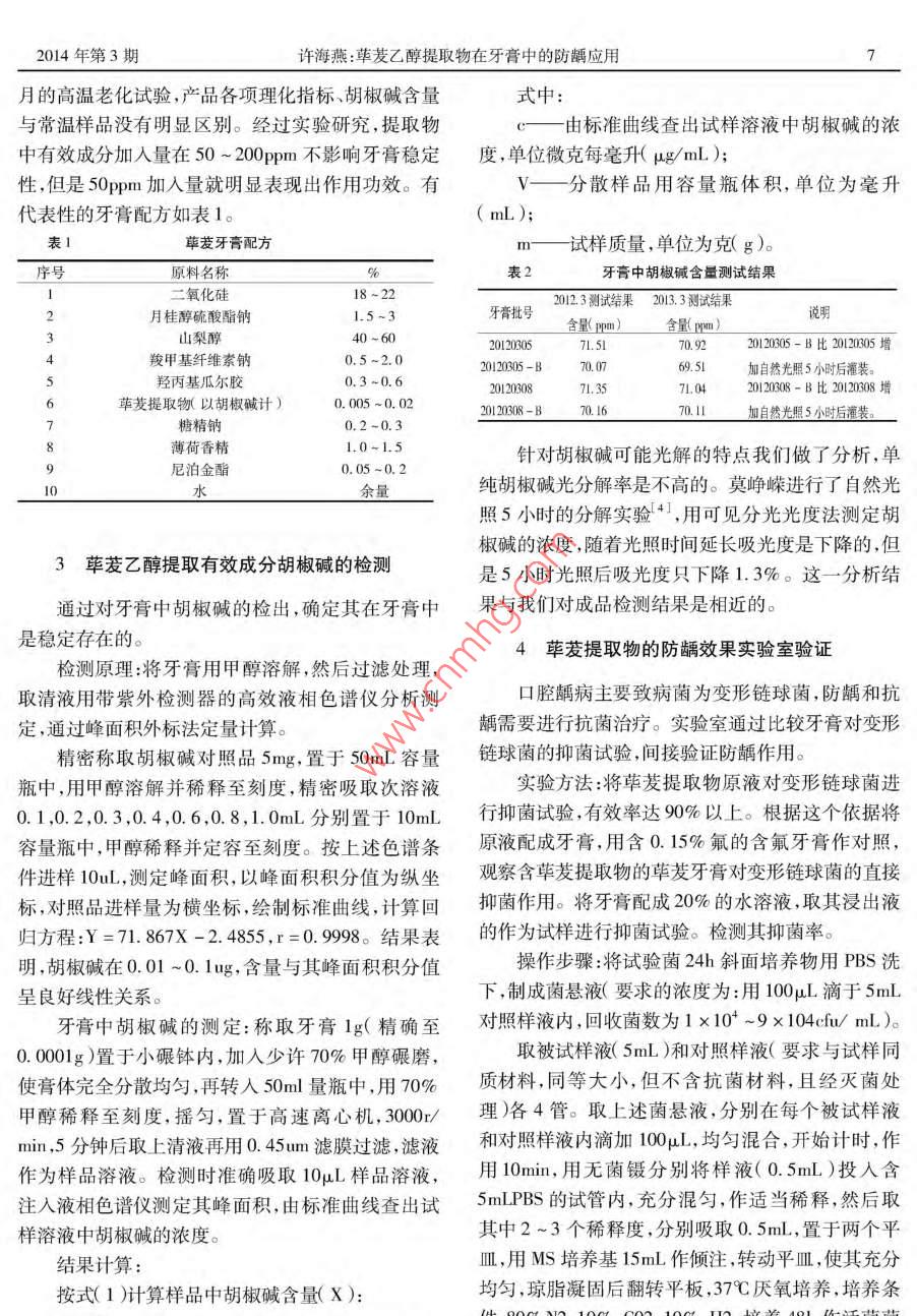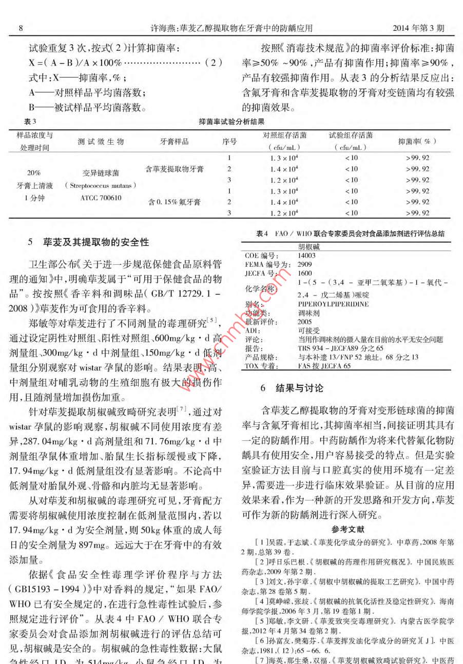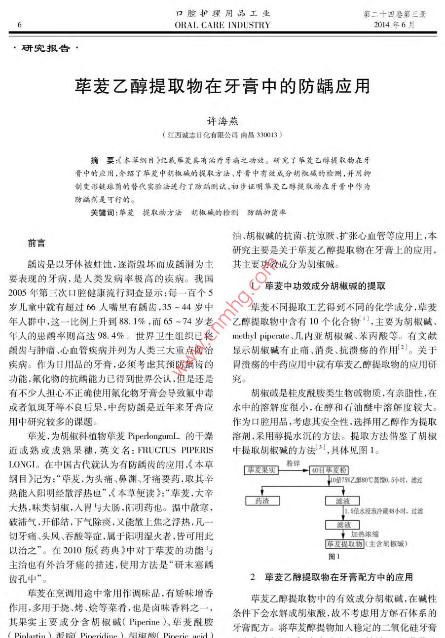 荜茇乙醇提取物在牙膏中的防龋应用