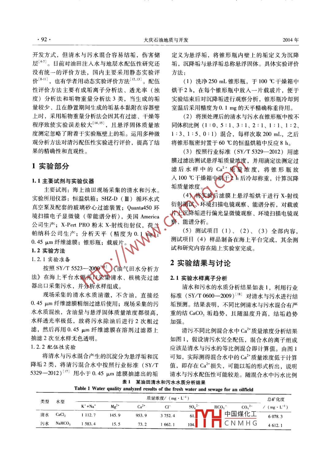 清水与污水配伍性微观评价方法