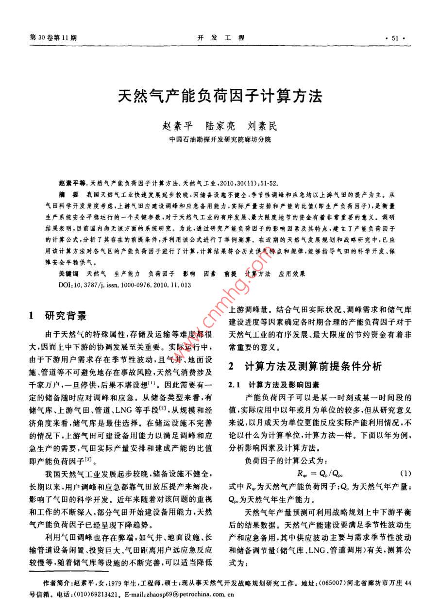 天然气产能负荷因子计算方法
