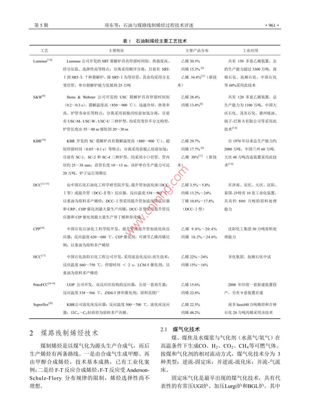 雷竞技世界杯手机登录 与煤路线制烯烃过程技术评述