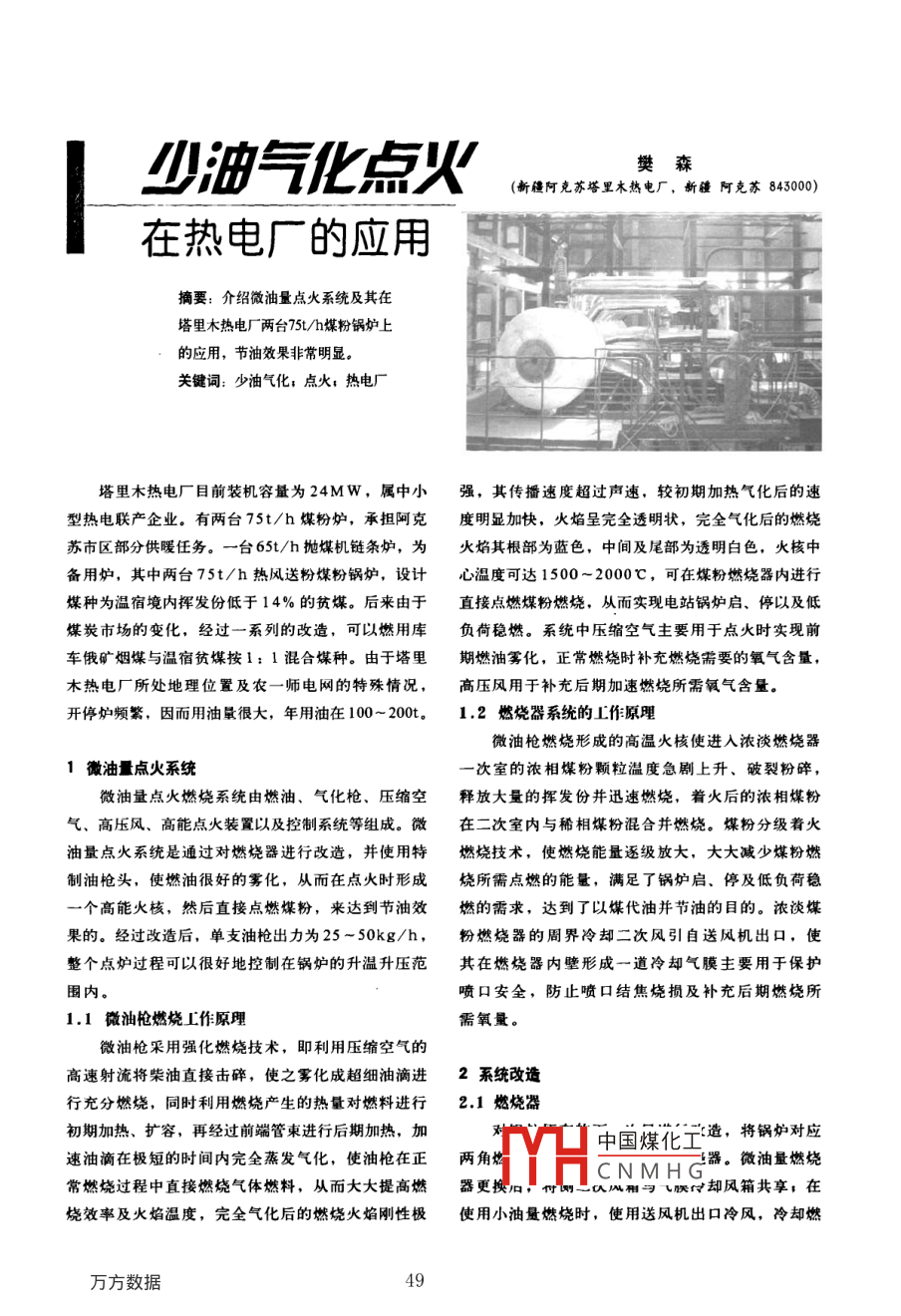 少油气化点火在热电厂的应用