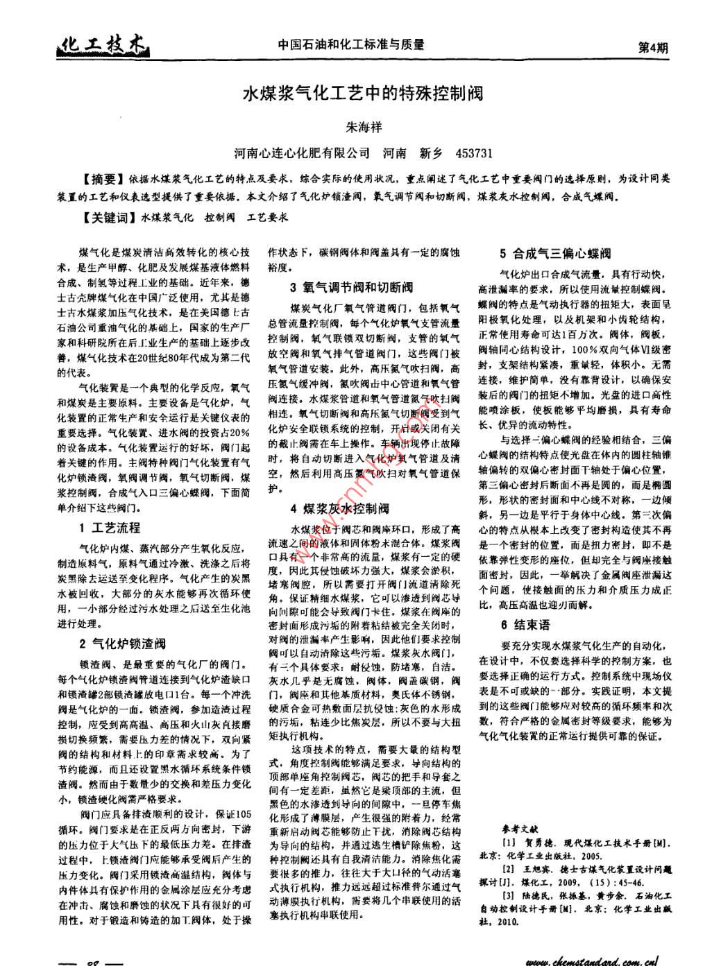 水煤浆气化工艺中的特殊控制阀
