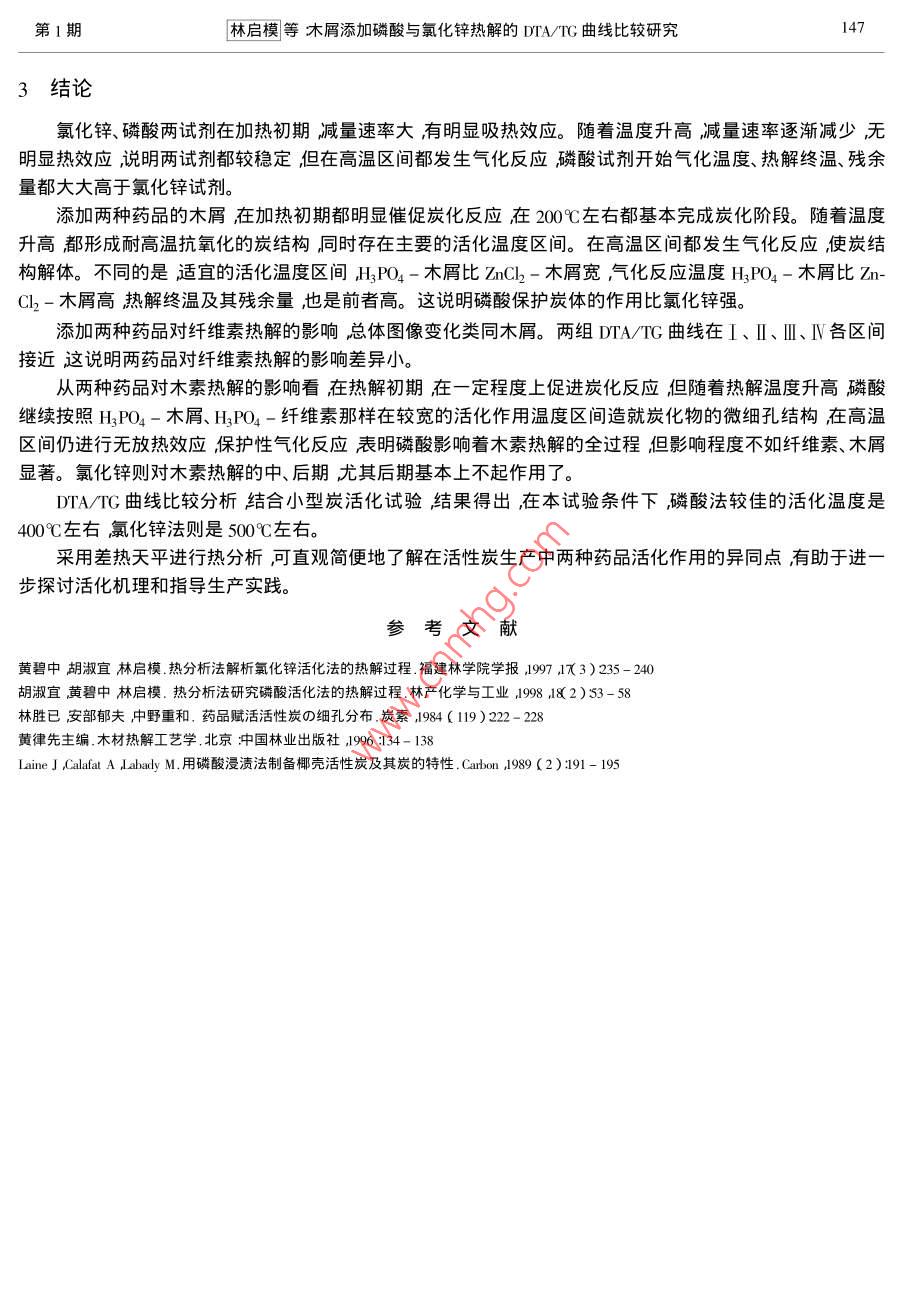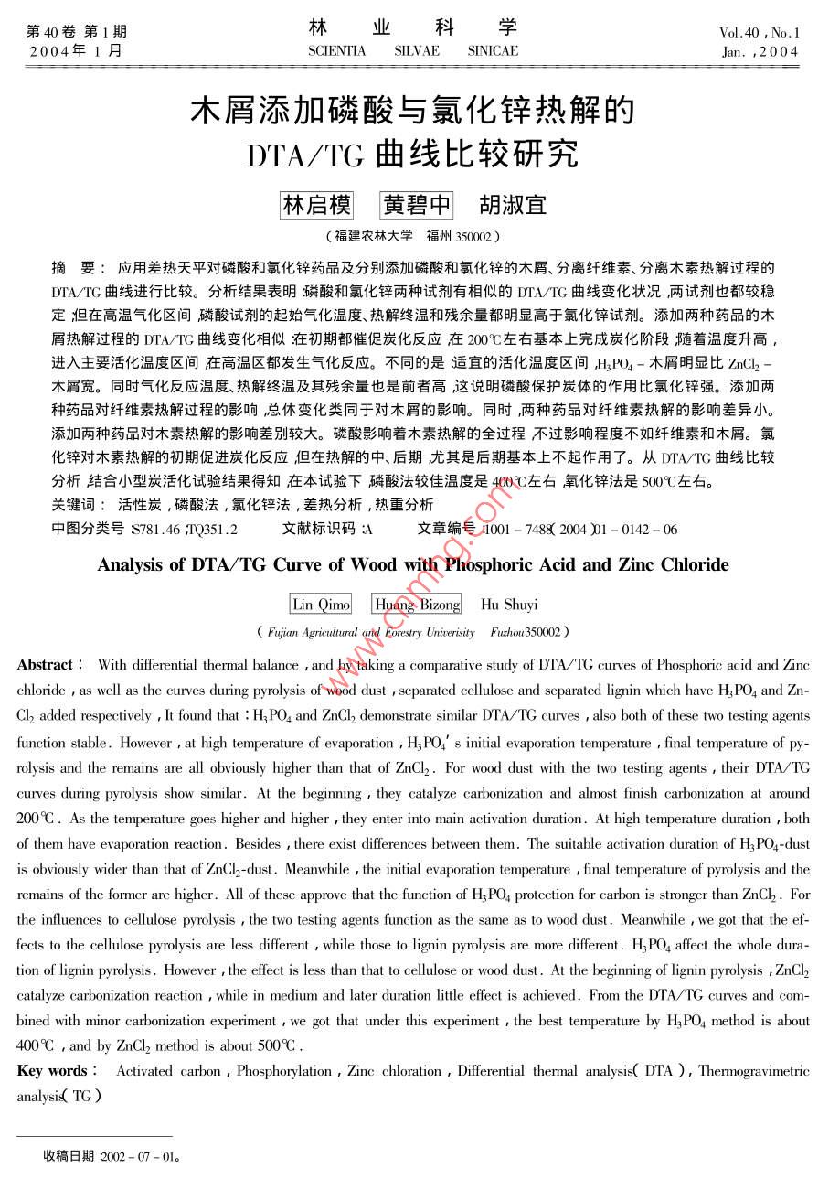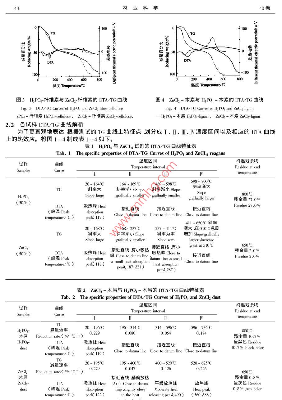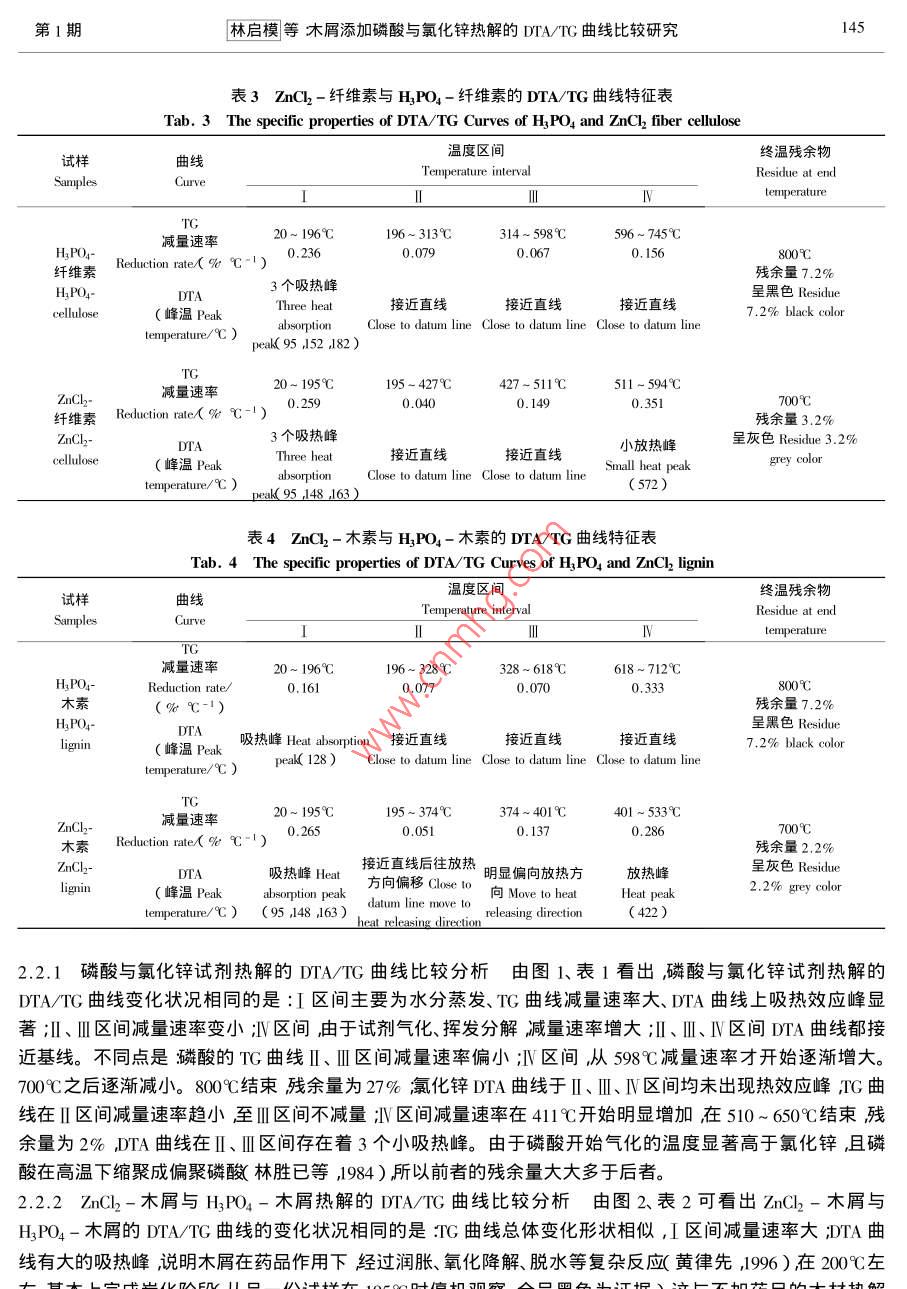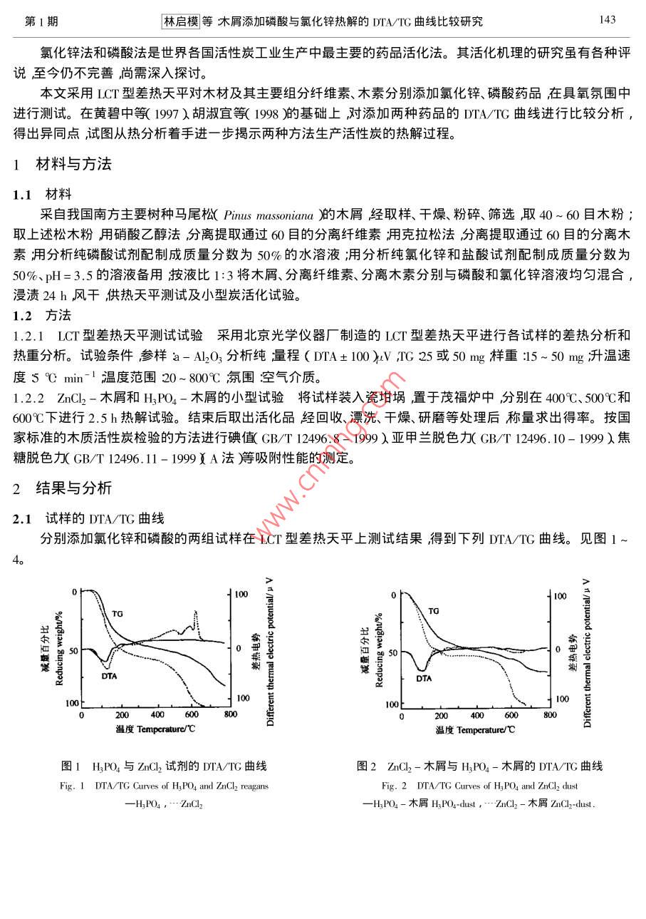 木屑添加磷酸与氯化锌热解的DTA/TG曲线比较研究
