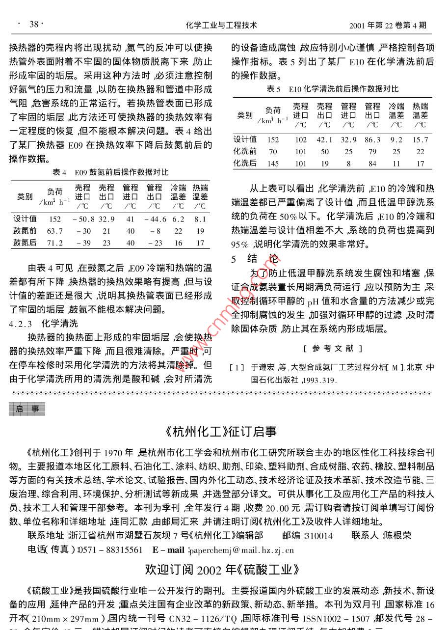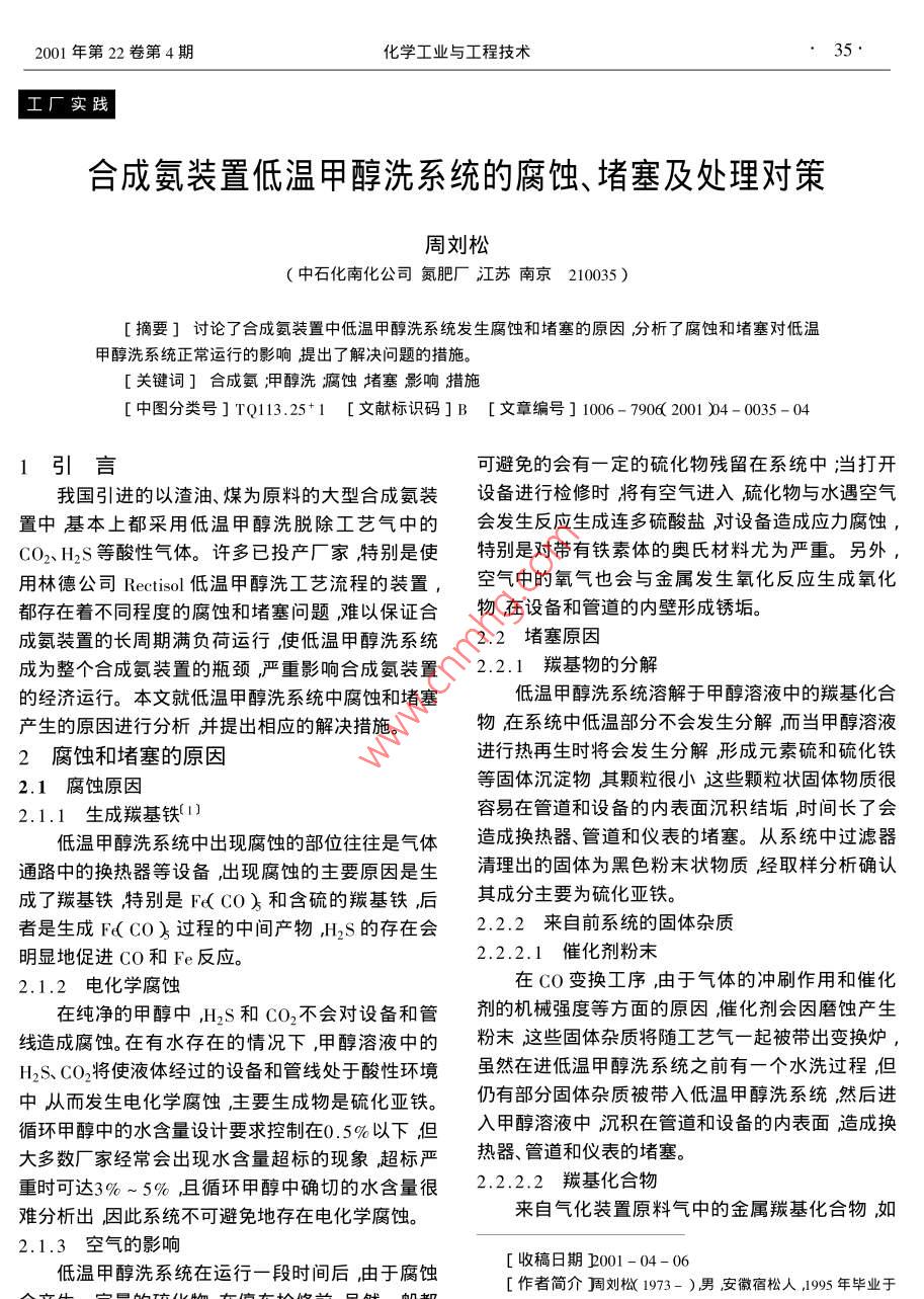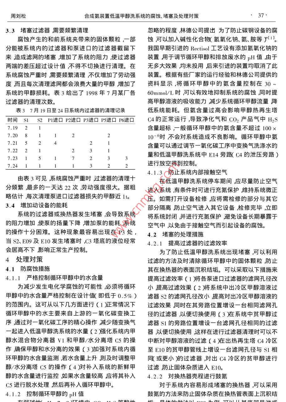 合成氨装置低温甲醇洗系统的腐蚀、堵塞及处理对策