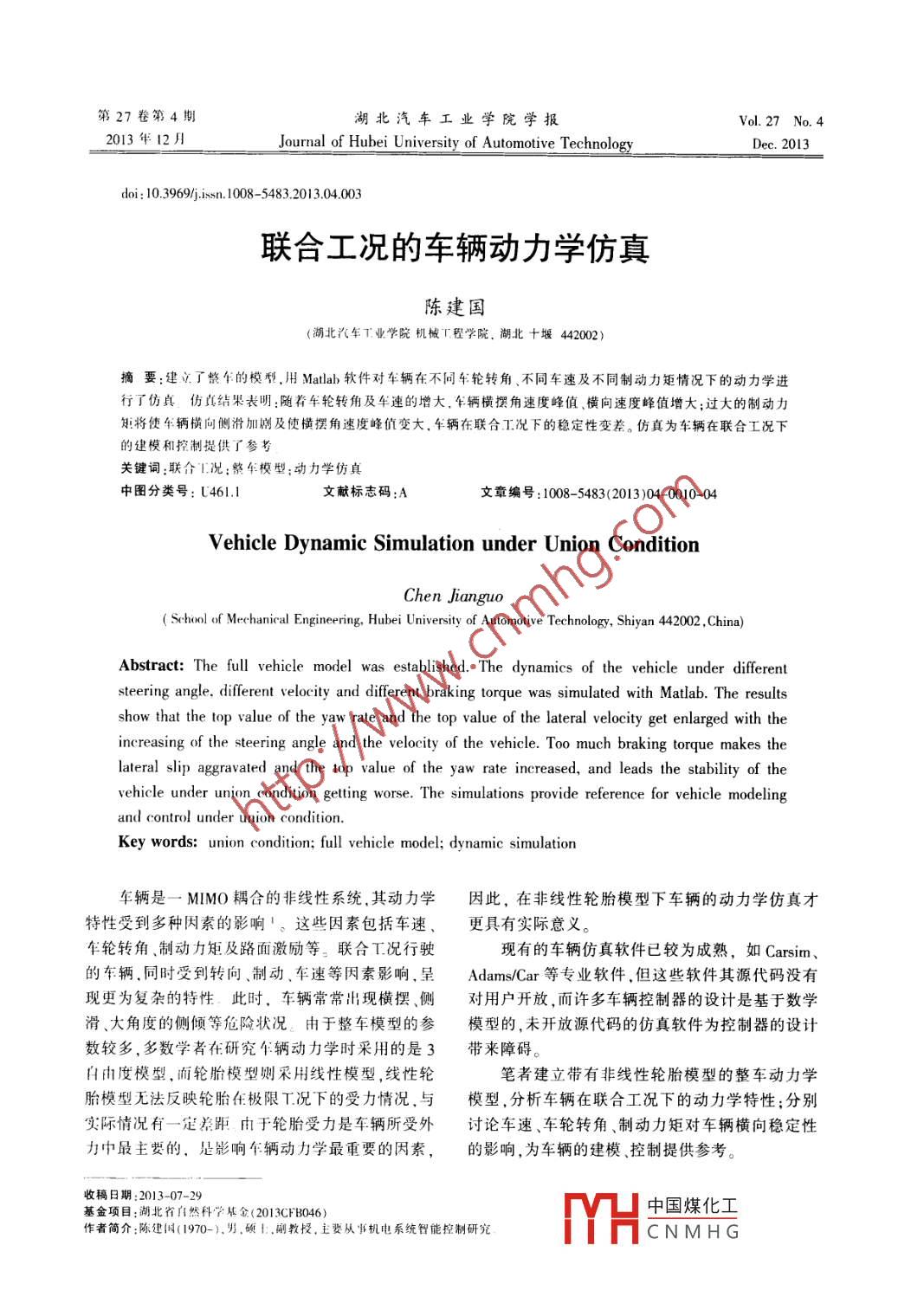- 期刊名字:湖北汽车工业学院学报