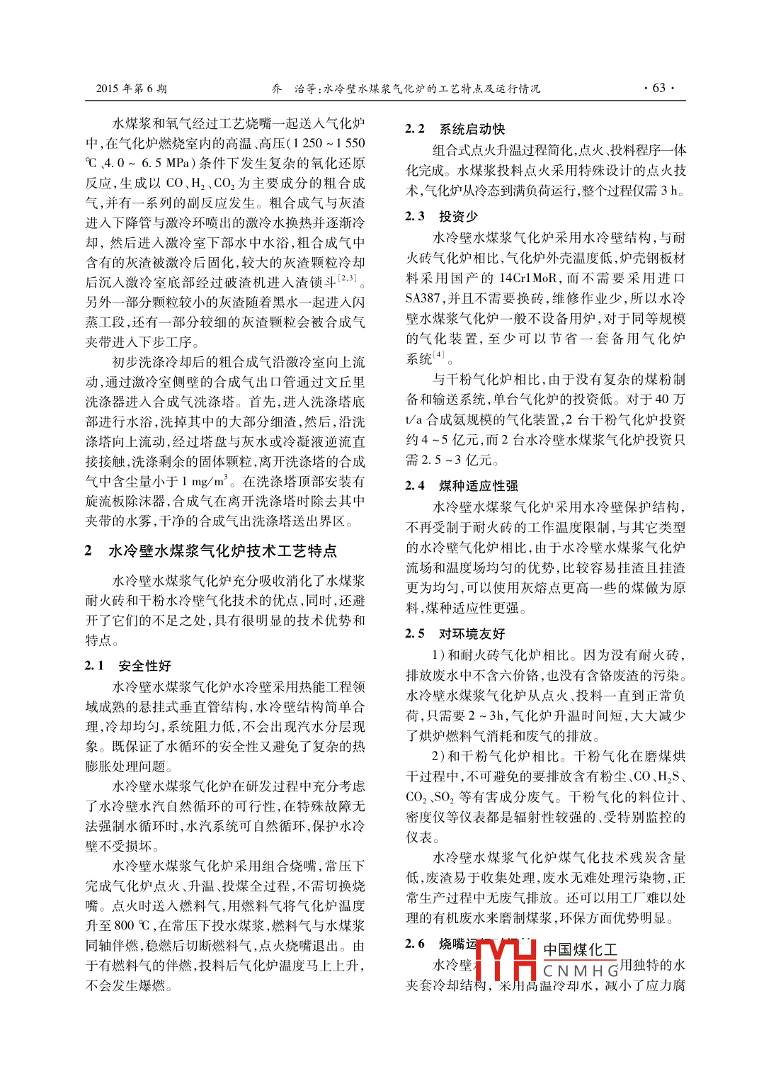 水冷壁水煤浆气化炉的工艺特点及运行情况