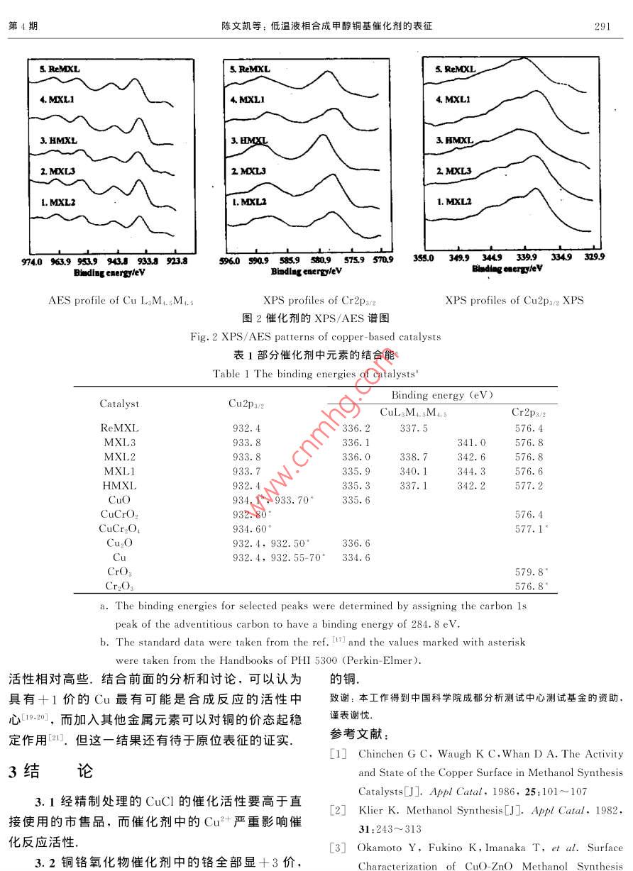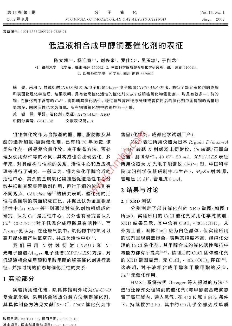 低温液相合成甲醇铜基催化剂的表征