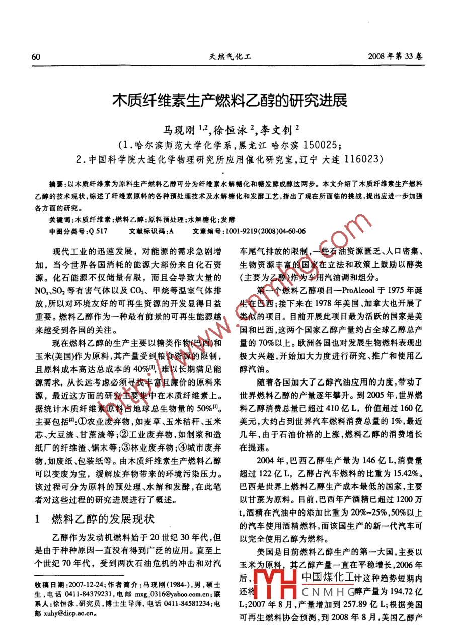 下一条:木质纤维素制燃料乙醇的预处理研究