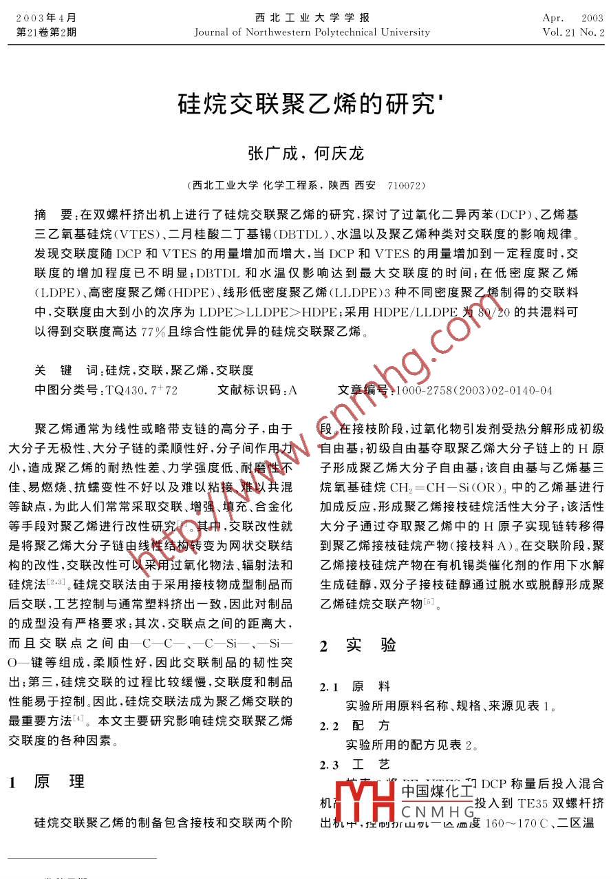 硅烷交联聚乙烯的研究