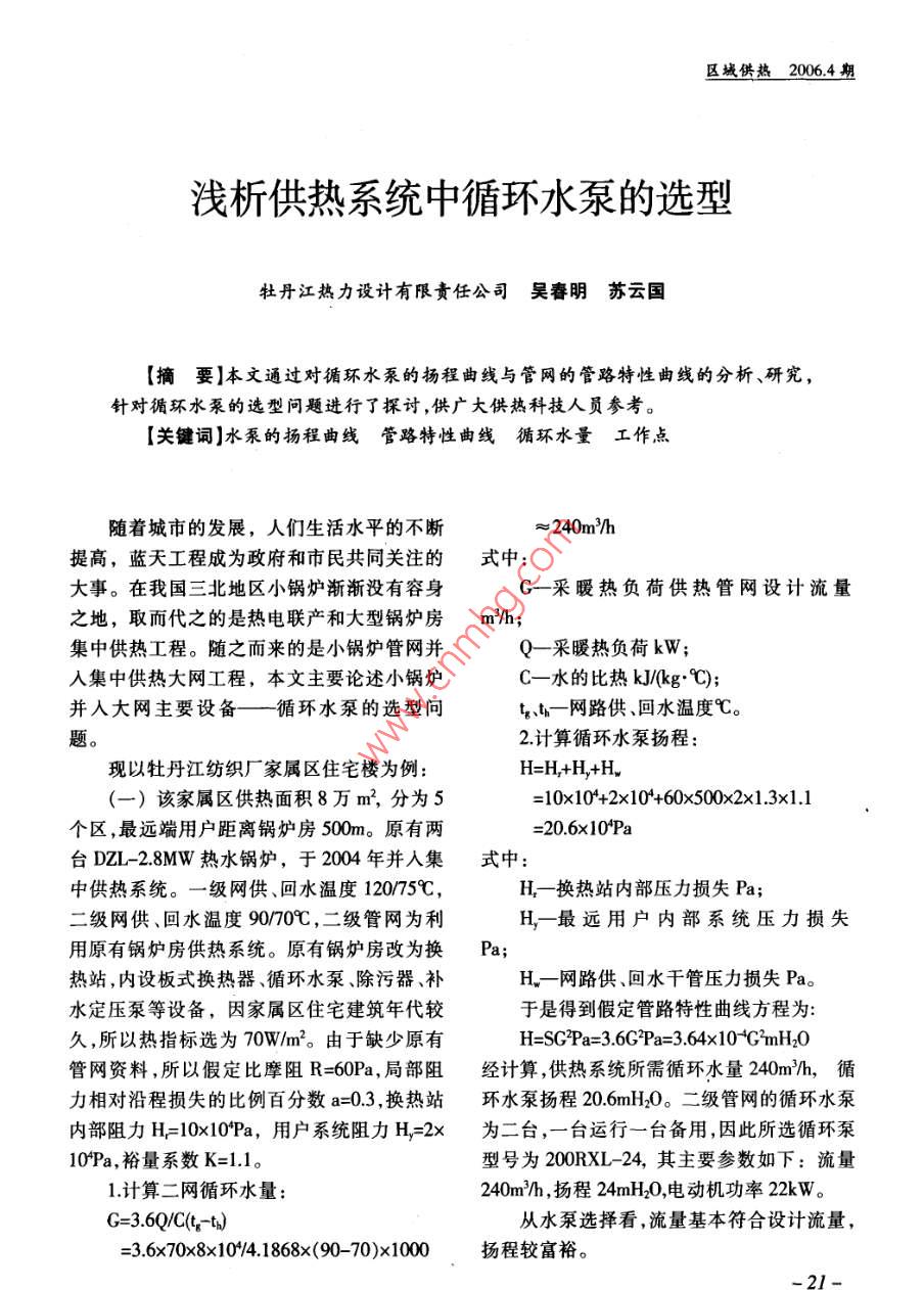 浅析供热系统中循环水泵的选型