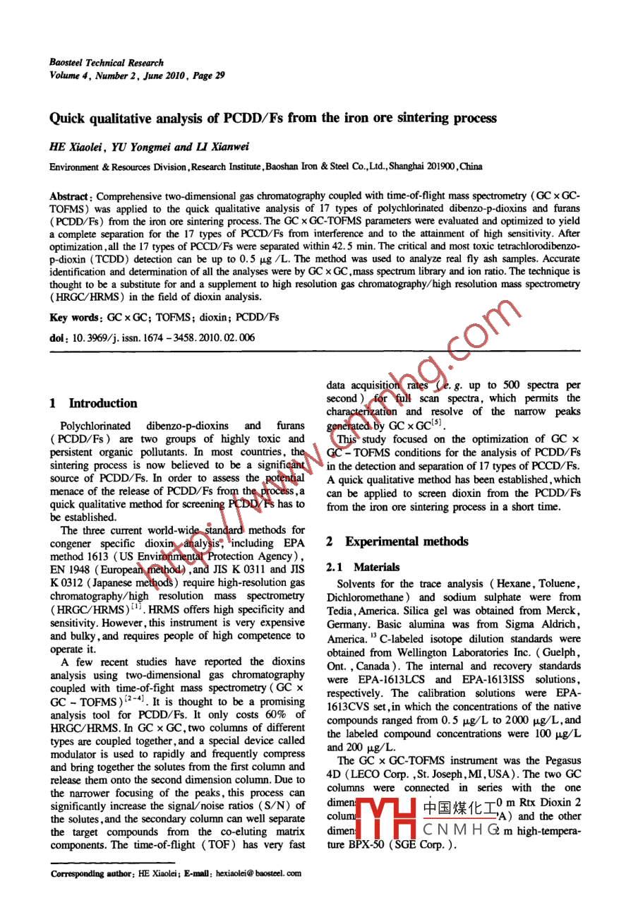 Quick qualitative analysis of PCDD/Fs from the iron ore sintering process