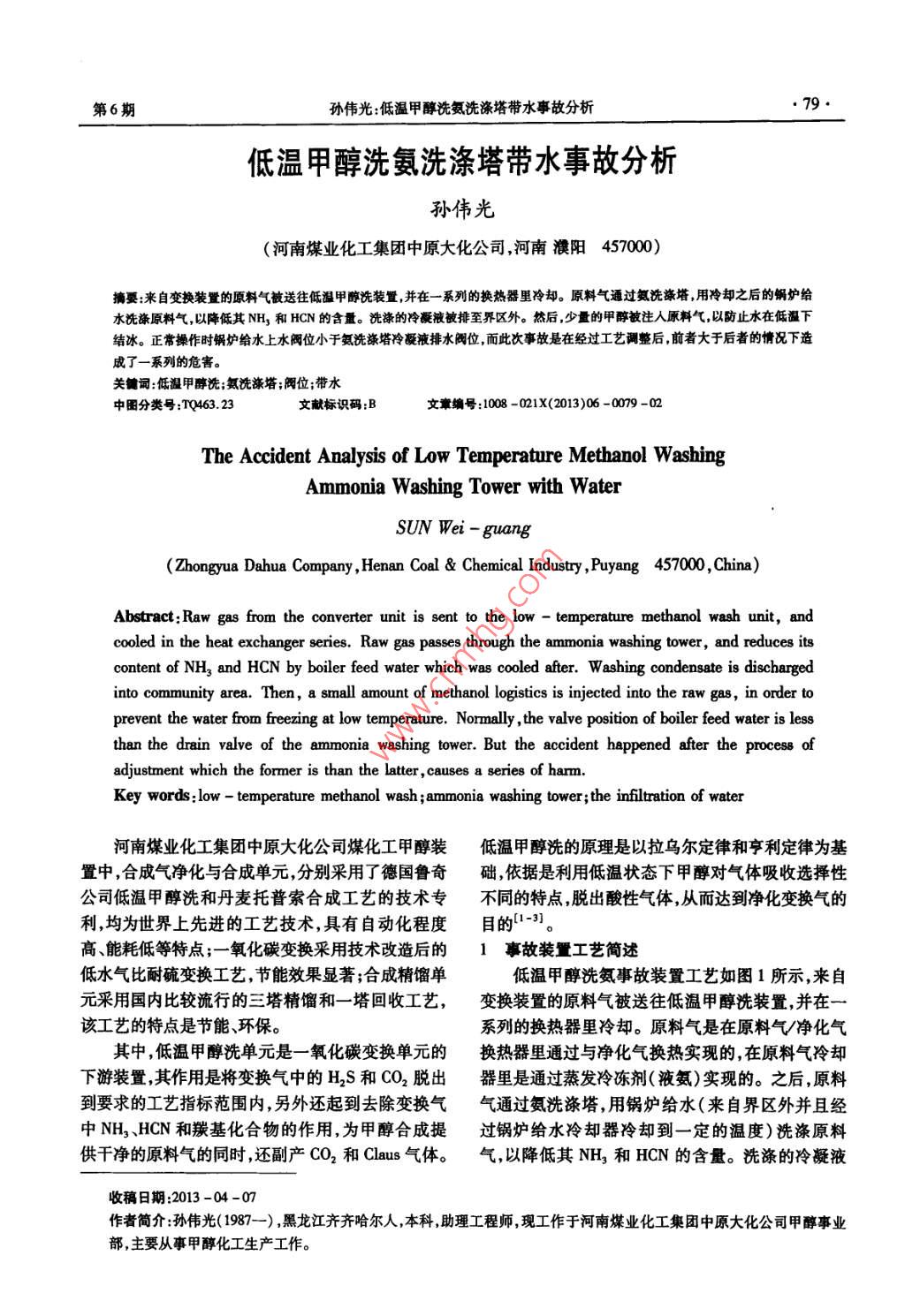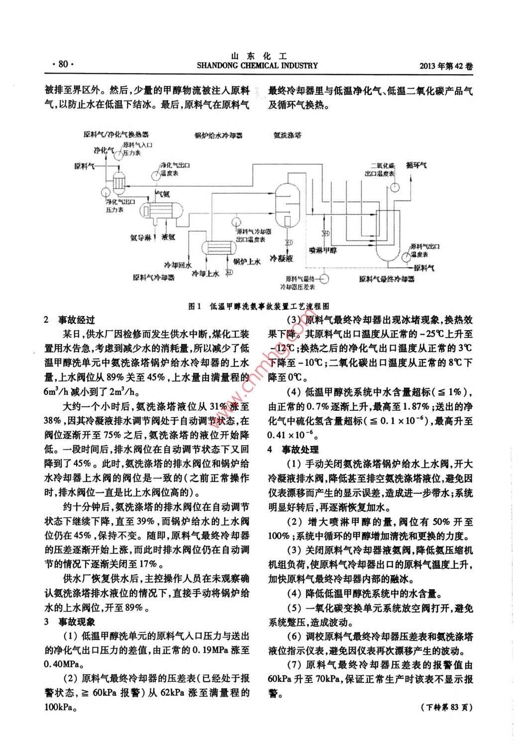 低温甲醇洗氨洗涤塔带水事故分析