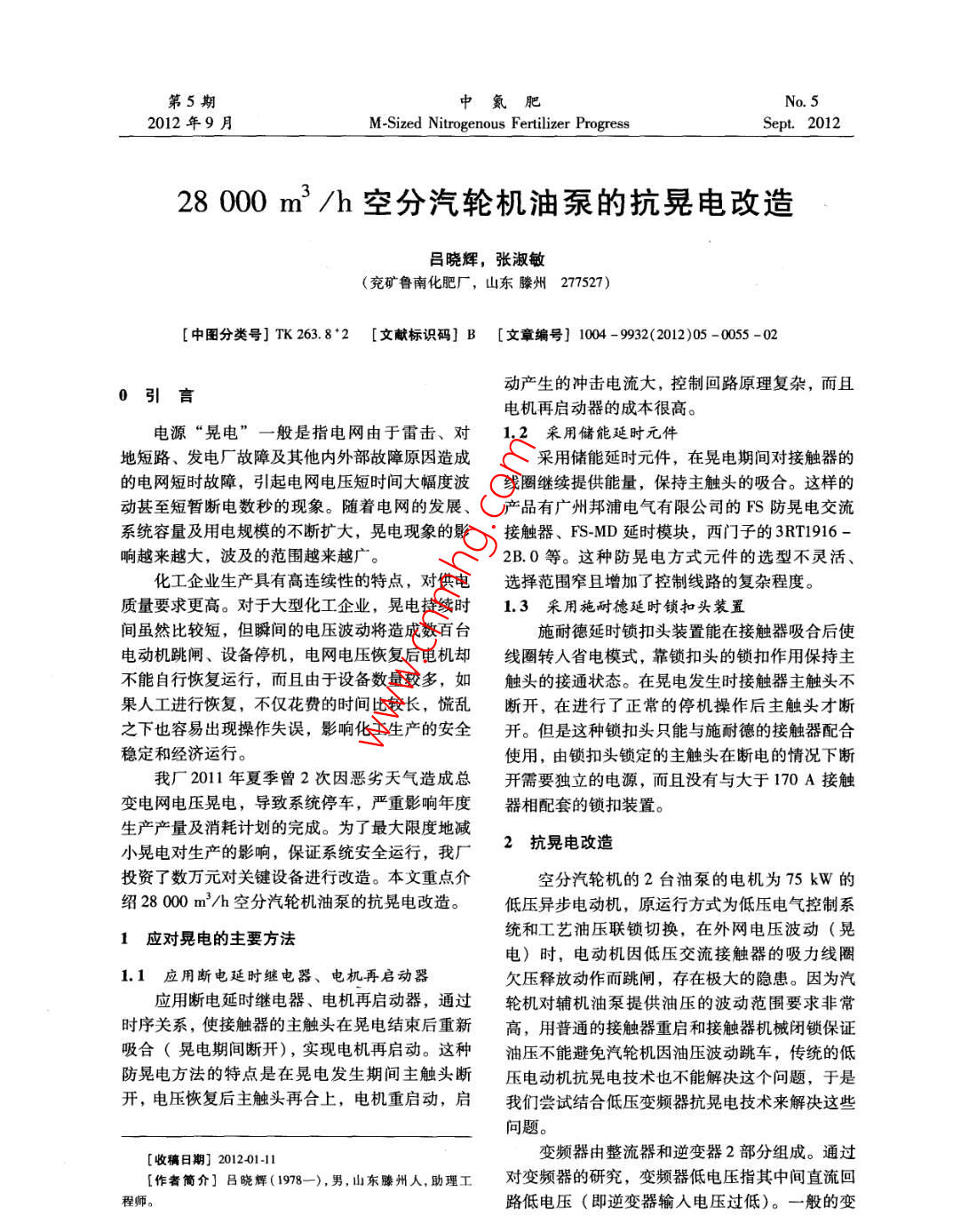 28000m3/h空分汽轮机油泵的抗晃电改造