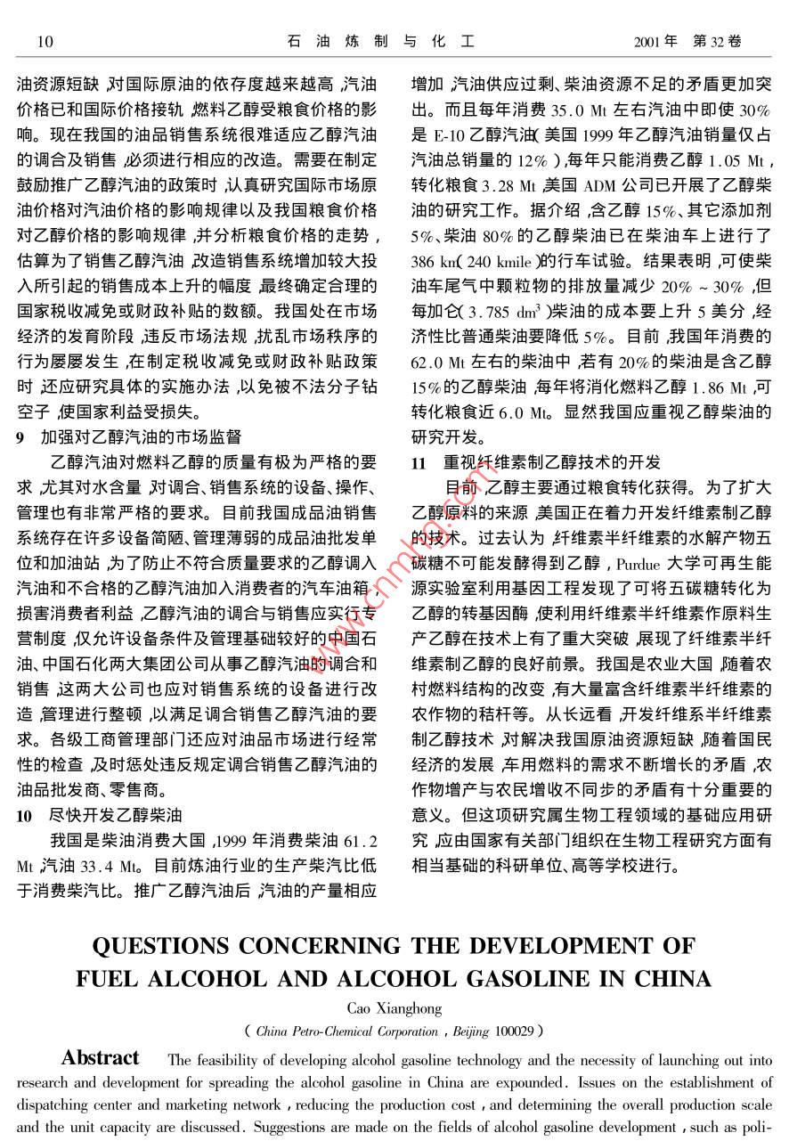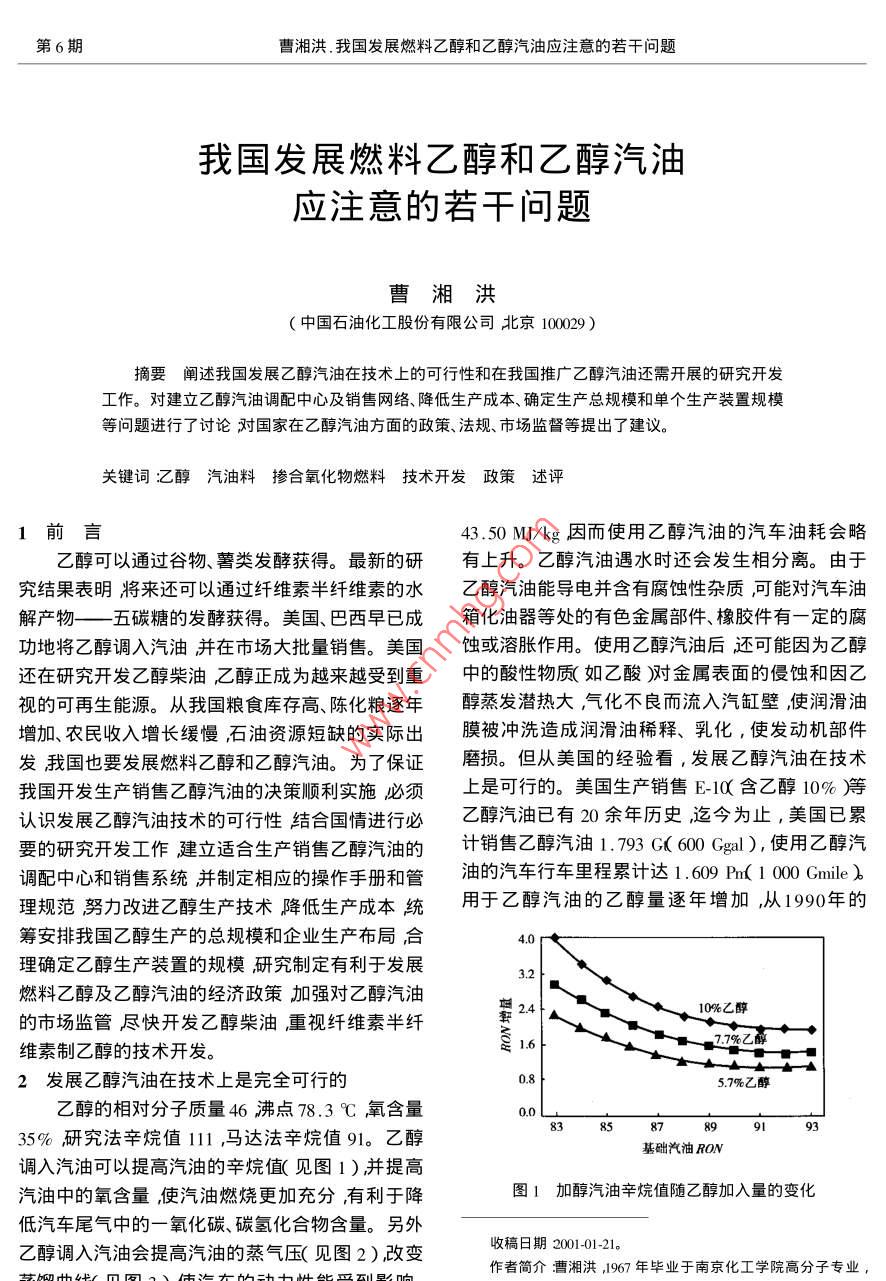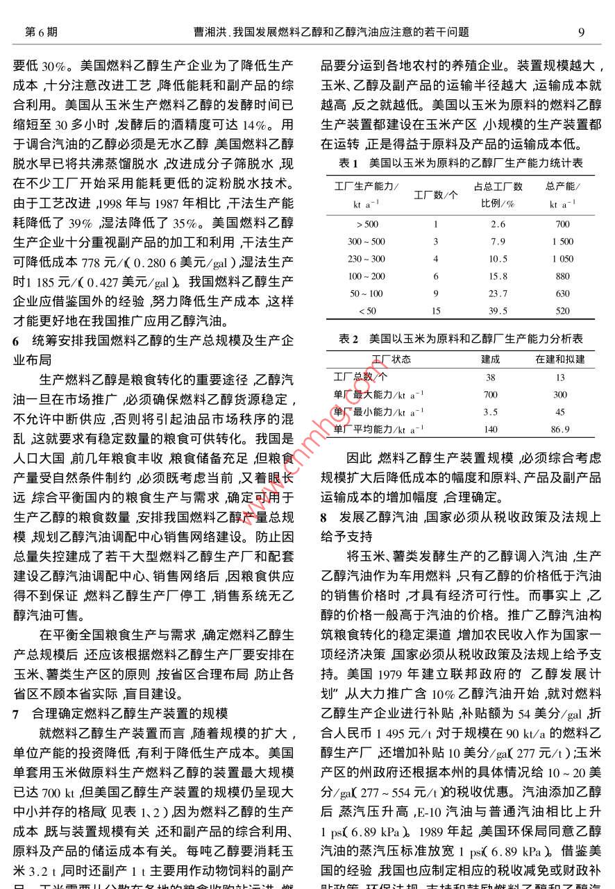 我国发展燃料乙醇和乙醇汽油应注意的若干问题