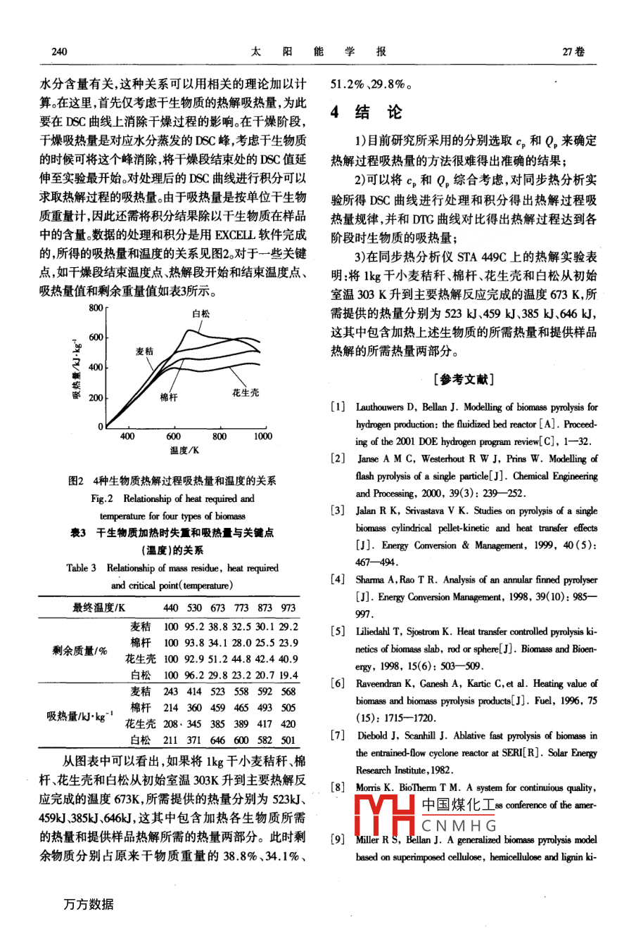 生物质热解过程吸热量