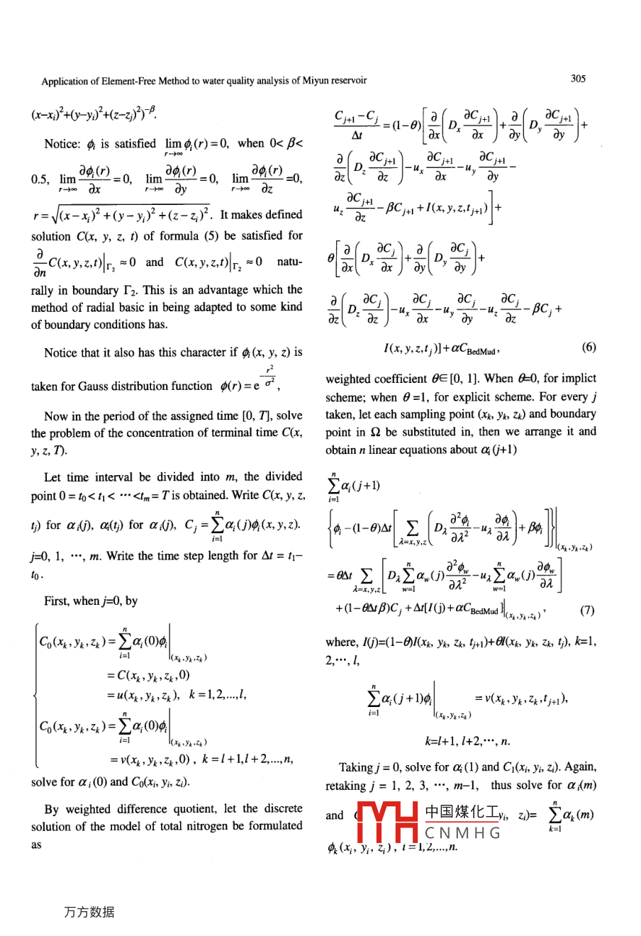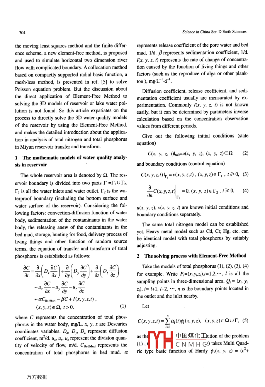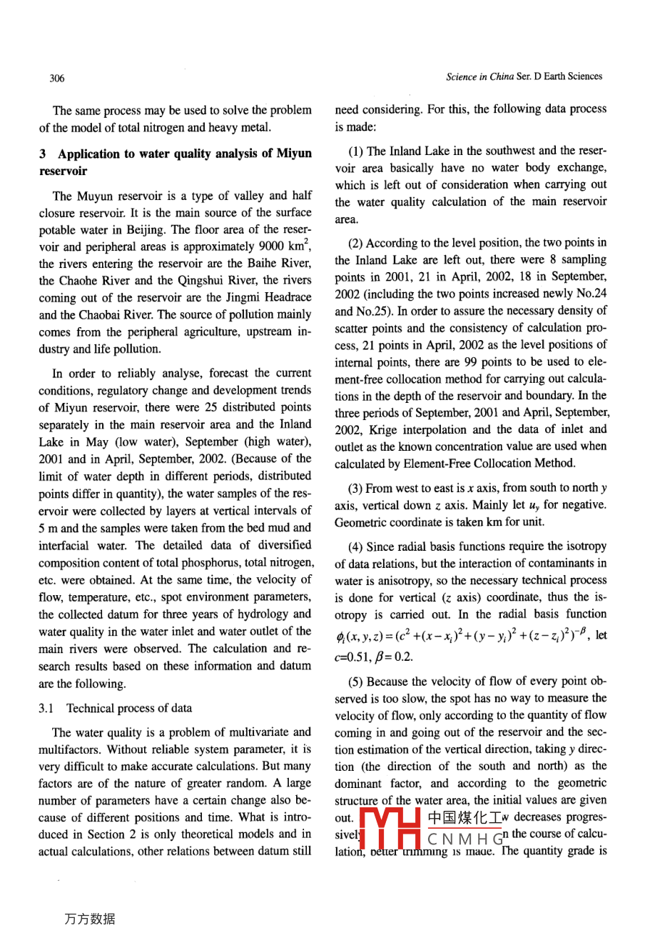 Application of Element-Free Method to water quality analysis of Miyun reservoir