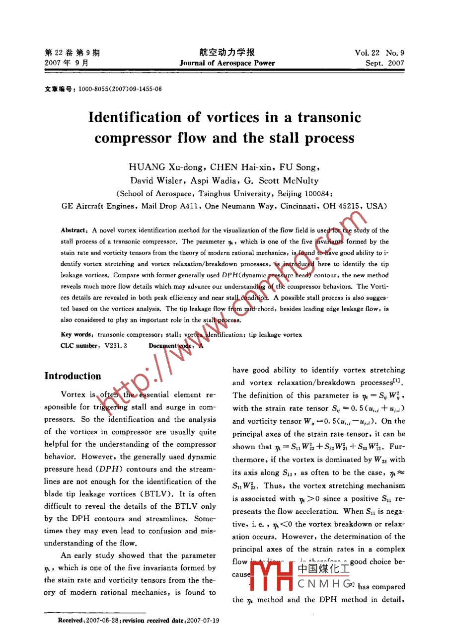 - 期刊名字:航空动力学报